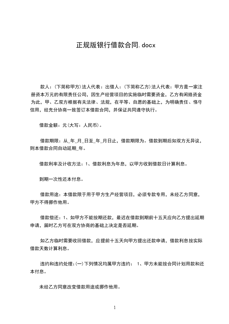 实用银行借款合同样书正规版