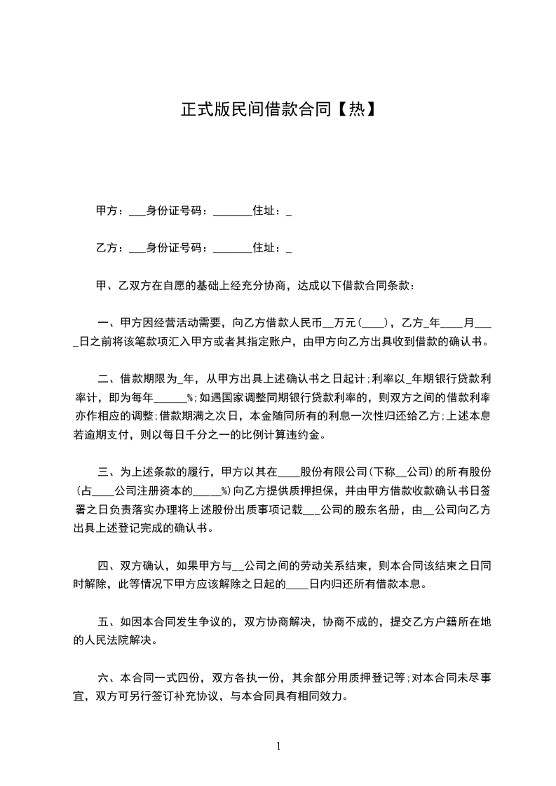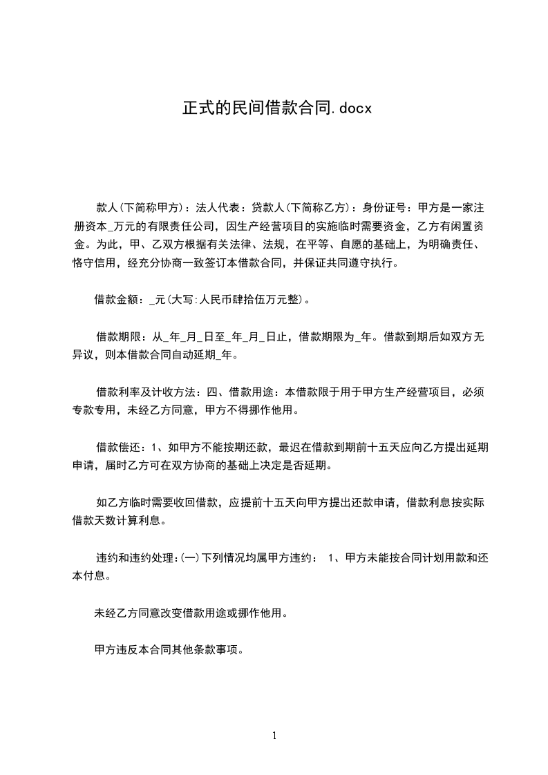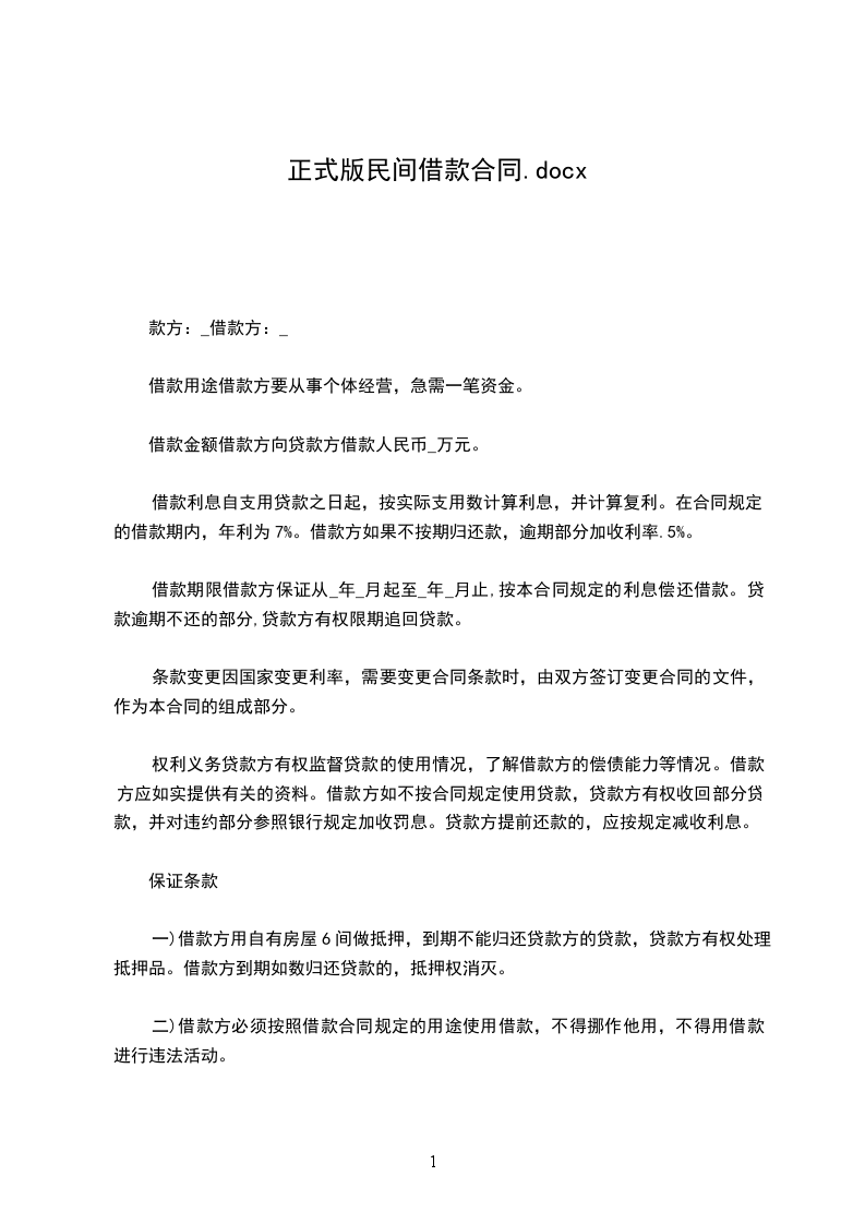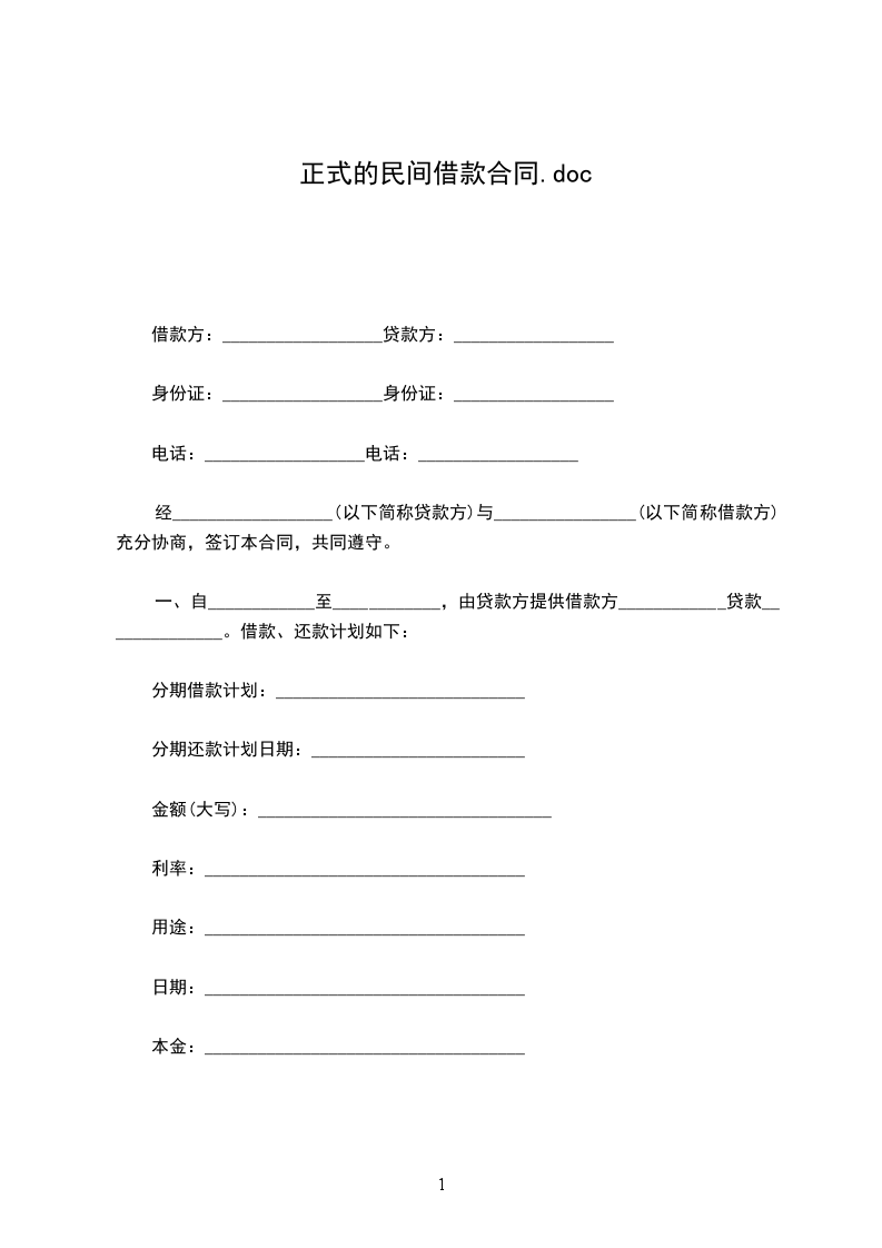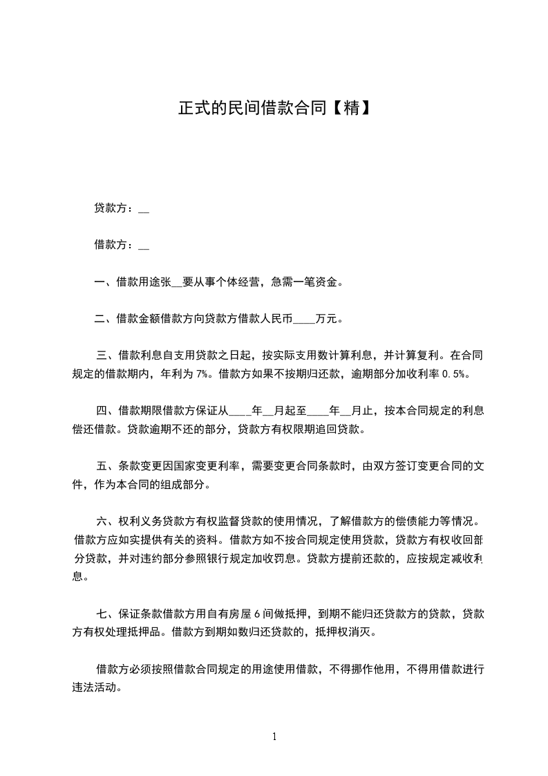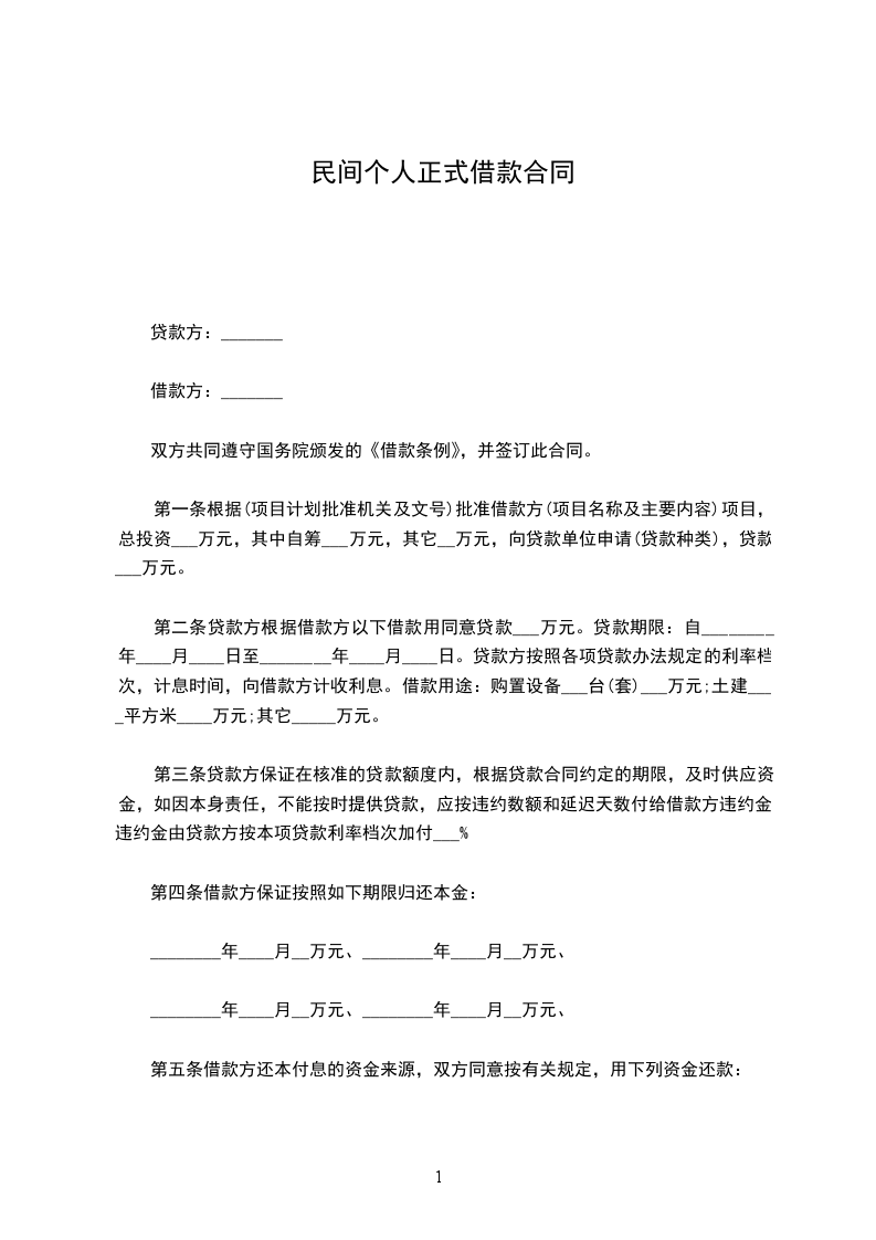 二、借款金额 借款方向贷款方借款人民币_____万元。