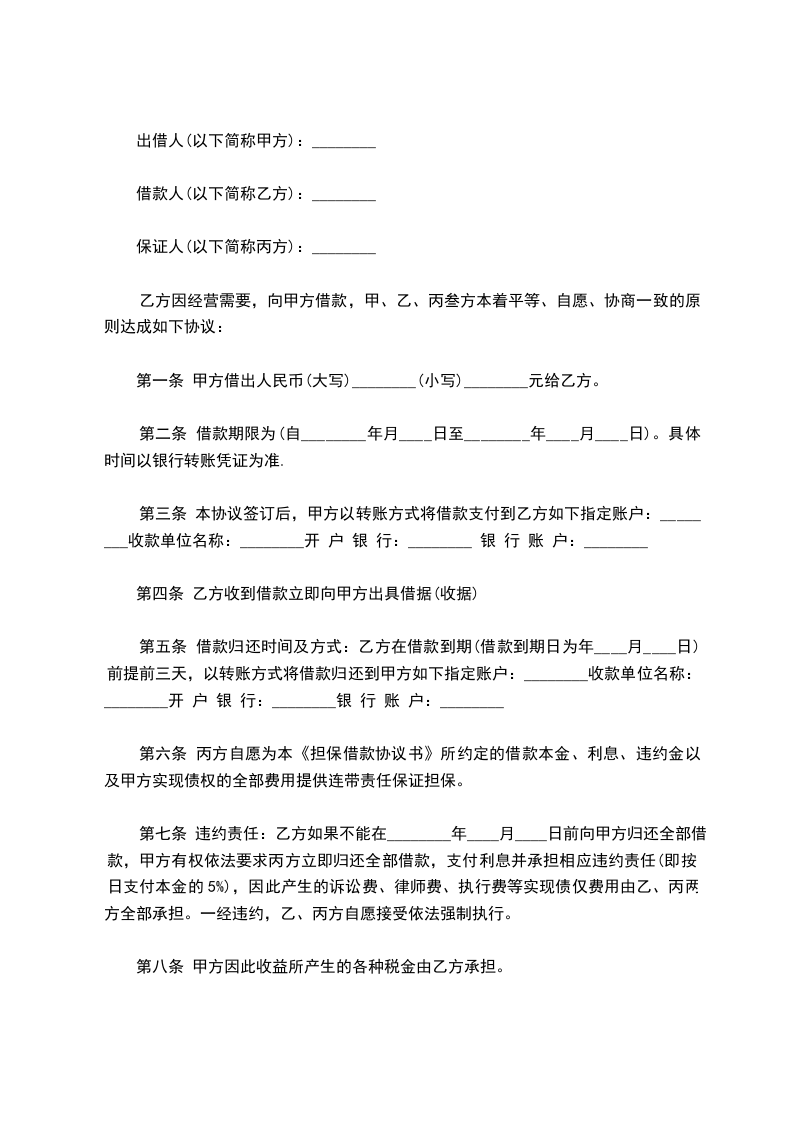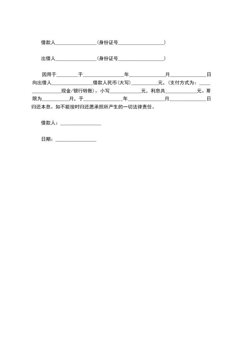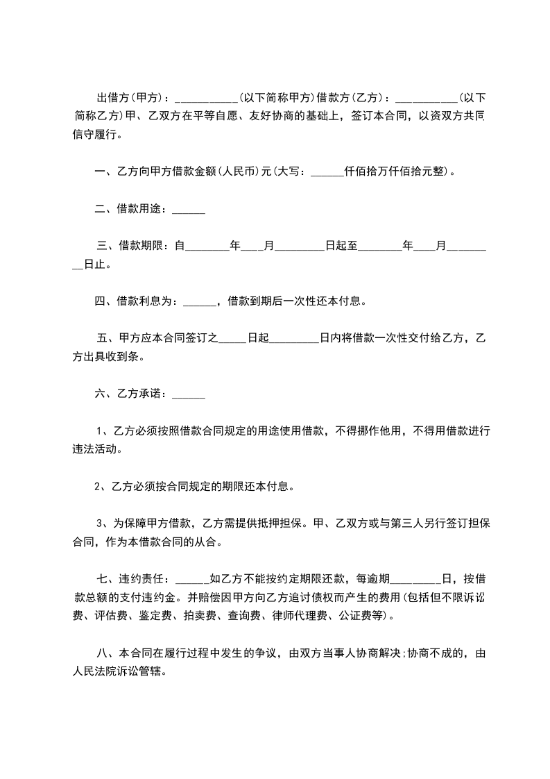 乙方向甲方借款人民币________元整用于 ,为明确双方权利义务,甲、乙双方在平等、自愿的基础上友好协商约定如下: