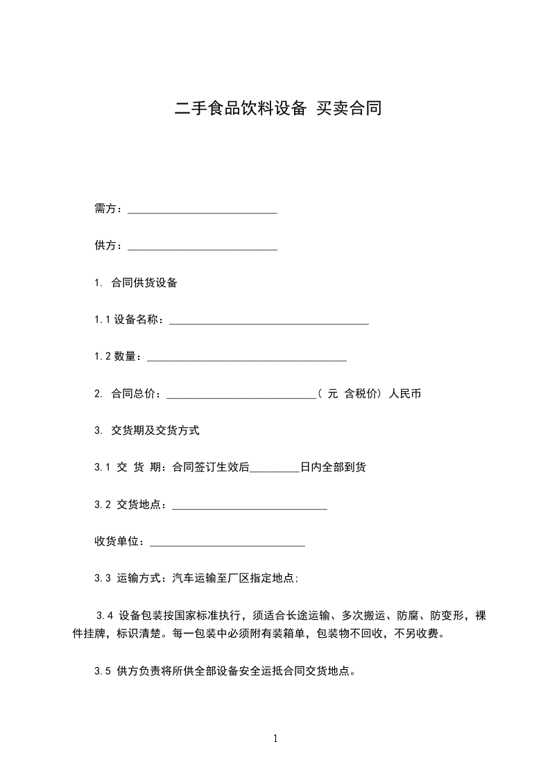 3.5 供方负责将所供全部设备安全运抵合同交货地点。