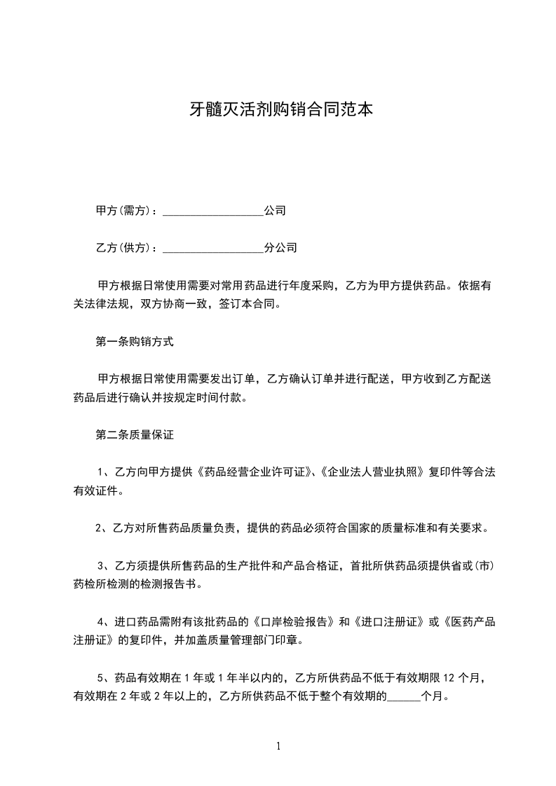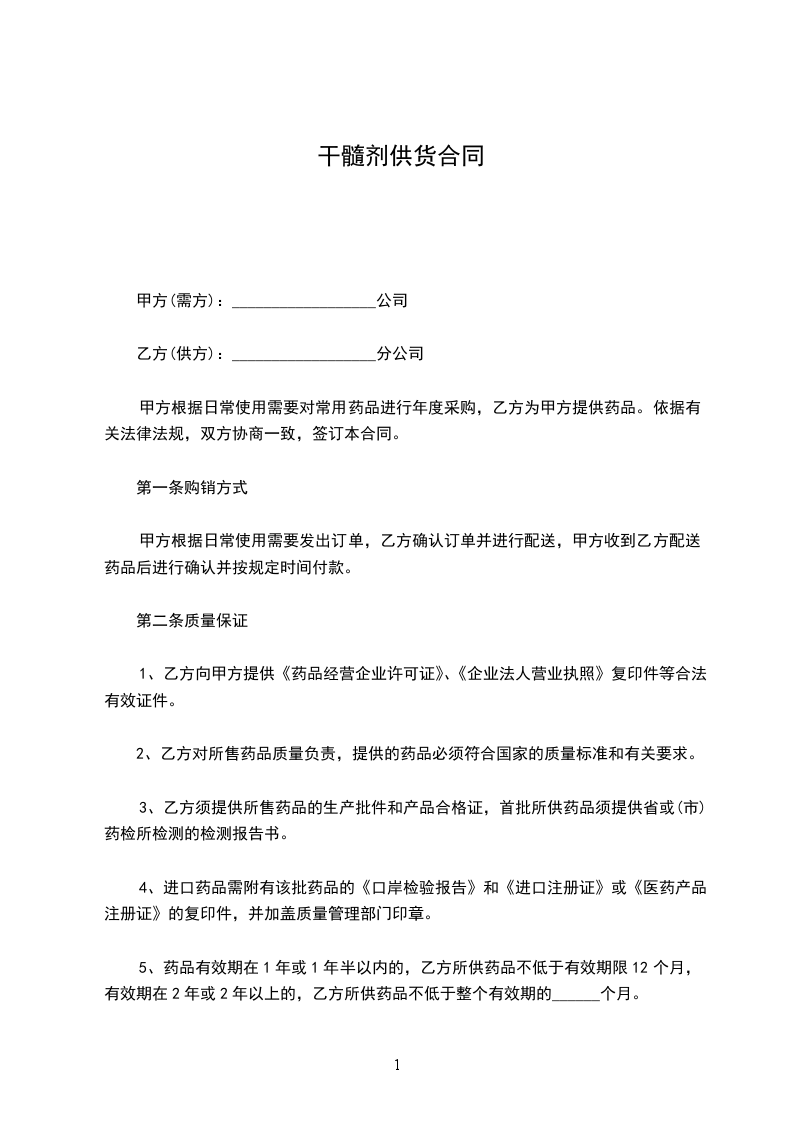 七、如双方对质量产生争议,乙方有权送到地市级以上药监部门检验,药品质量以法定检验报告为准。