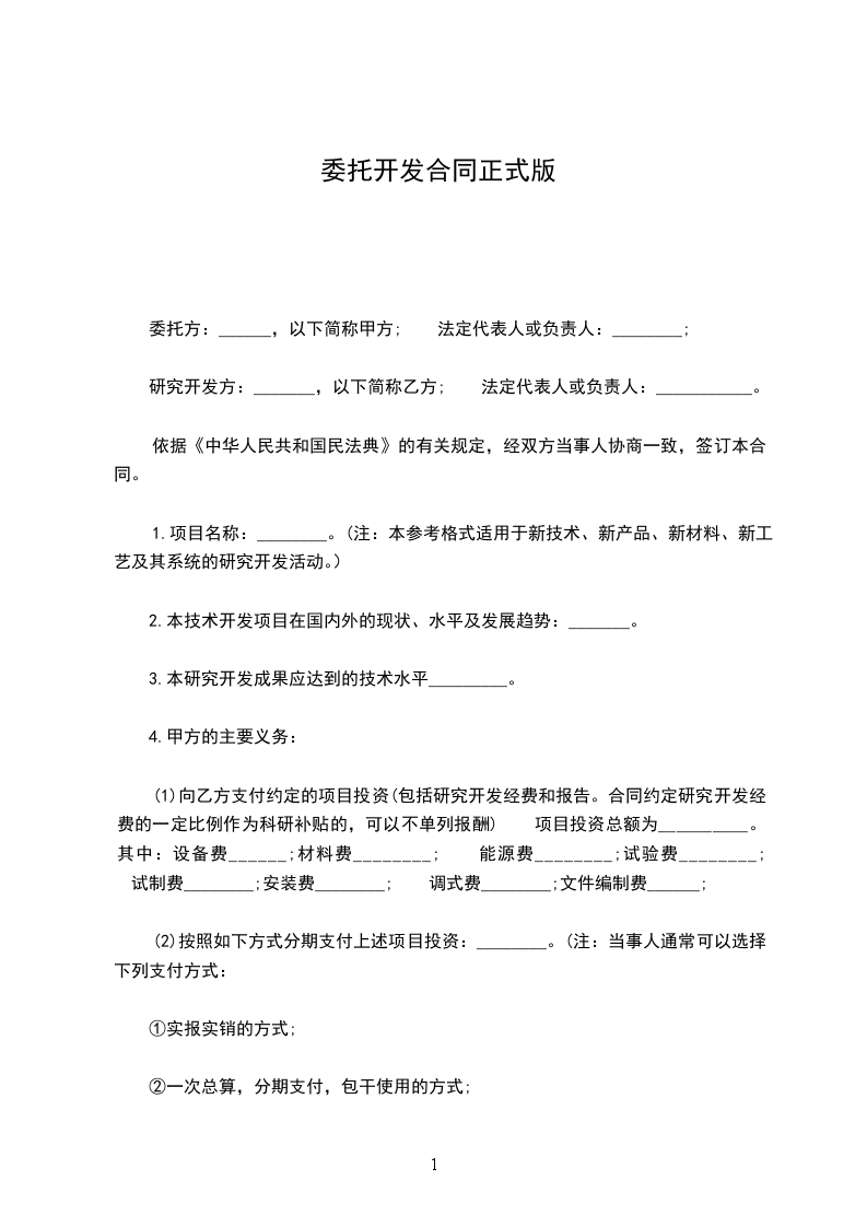 1.项目名称:________。(注:本参考格式适用于新技术、新产品、新材料、新工艺及其系统的研究开发活动。)