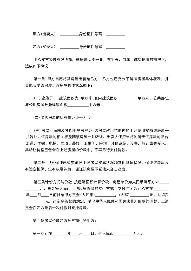 甲方(出卖人):__________身份证件号码:__________