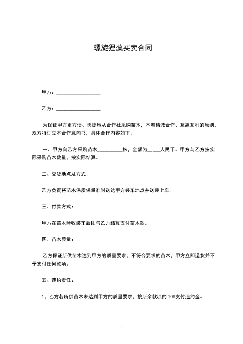 五、违约责任:任何一方违约,违约方每天按货款金额的1%支付违约金给守约方。