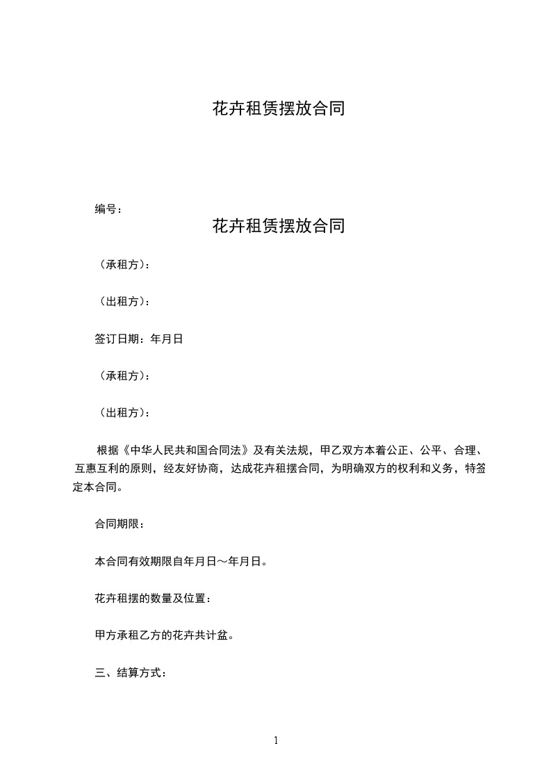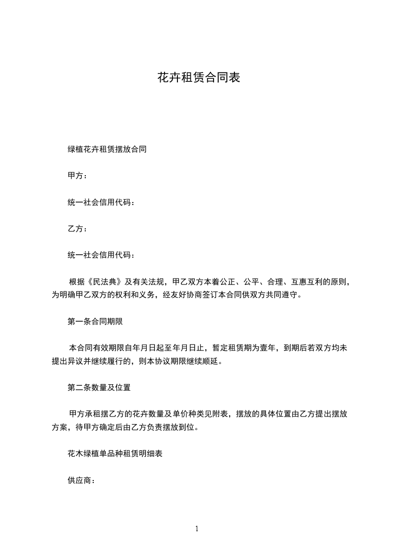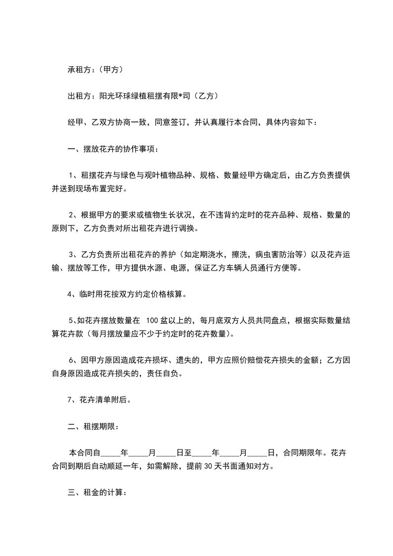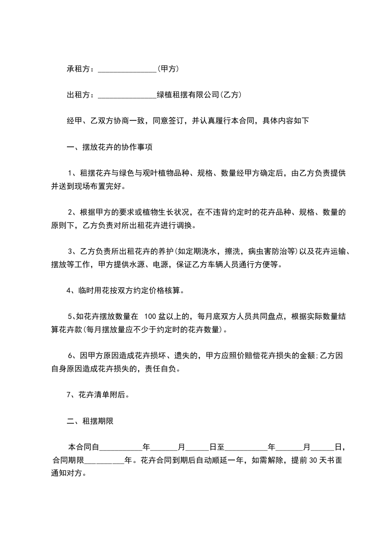 本合同自_____年_____月_____日至_____年_____月_____日,合同期限年。花卉合同到期后自动顺延一年,如需解除,提前30天书面通知对方。