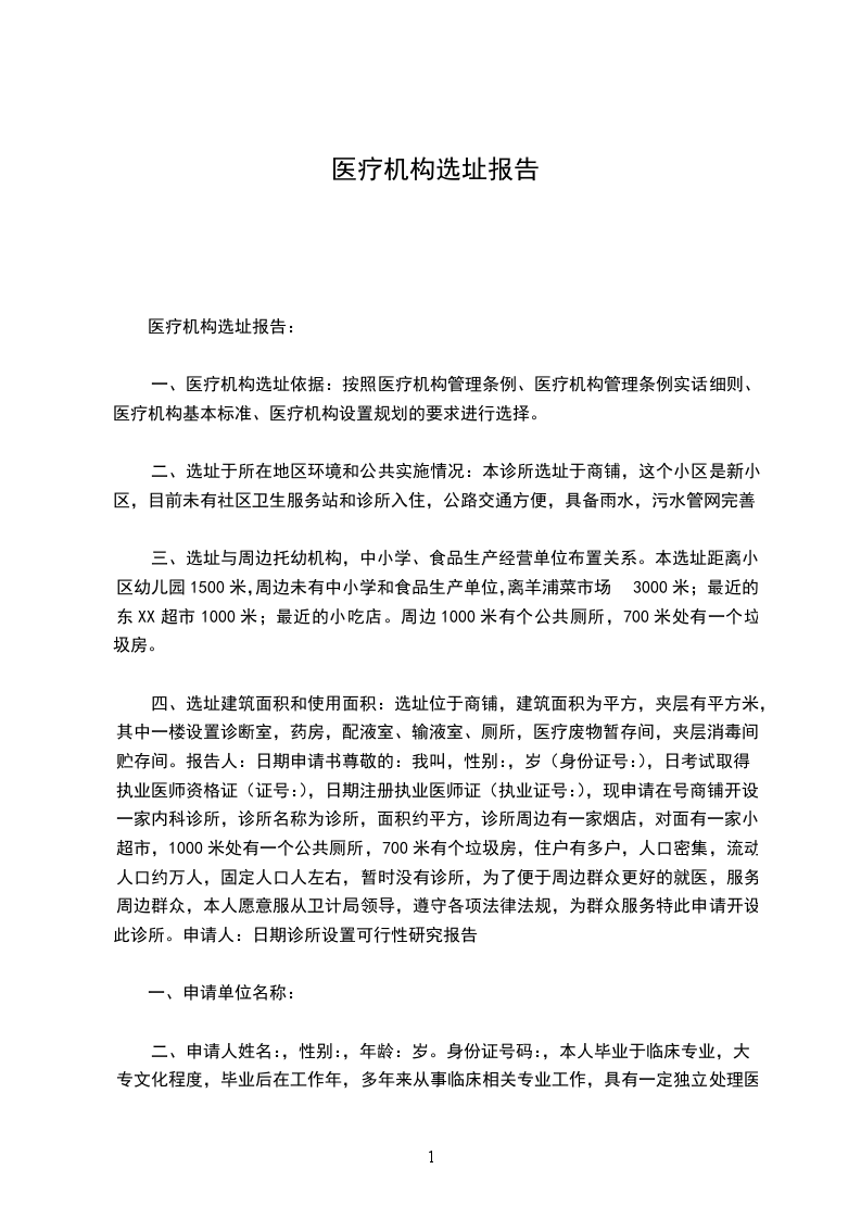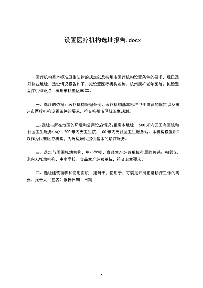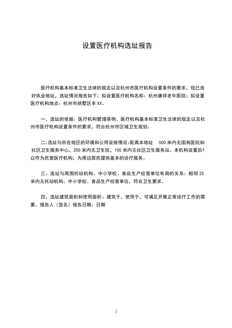医疗机构设置选址报告