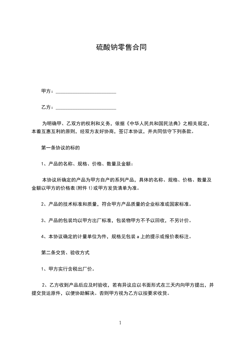 根据《中华人民共和国民法典》,甲、乙双方经协商确定,甲方向乙方购买药品。为明确双方责任和权利,特签订本合同,共同遵守。具体条款如下:
