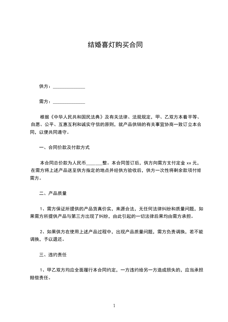 根据《中华人民共和国民法典》及有关法律、法规规定,甲、乙双方本着平等、自愿、公平、互惠互利和诚实守信的原则,就产品供销的有关事宜协商一致订立本合同,以便共同遵守。