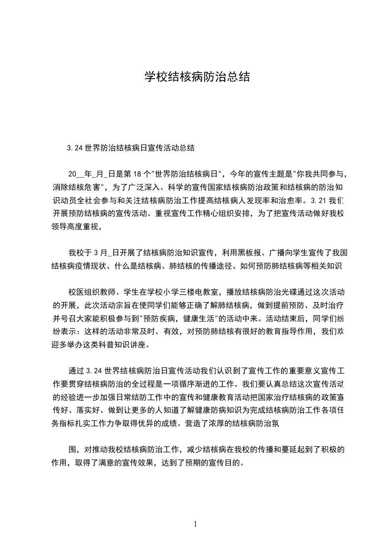 20__年_月_日是第18个"世界防治结核病日",今年的宣传主题是"你我共同参与,消除结核危害",为了广泛深入、科学的宣传国家结核病防治政策和结核病的防治知识动员全社会参与和关注结核病防治工作提高结核病人发现率和治愈率。3.21我们开展预防结核病的宣传活动。重视宣传工作精心组织安排,为了把宣传活动做好我校领导高度重视,
