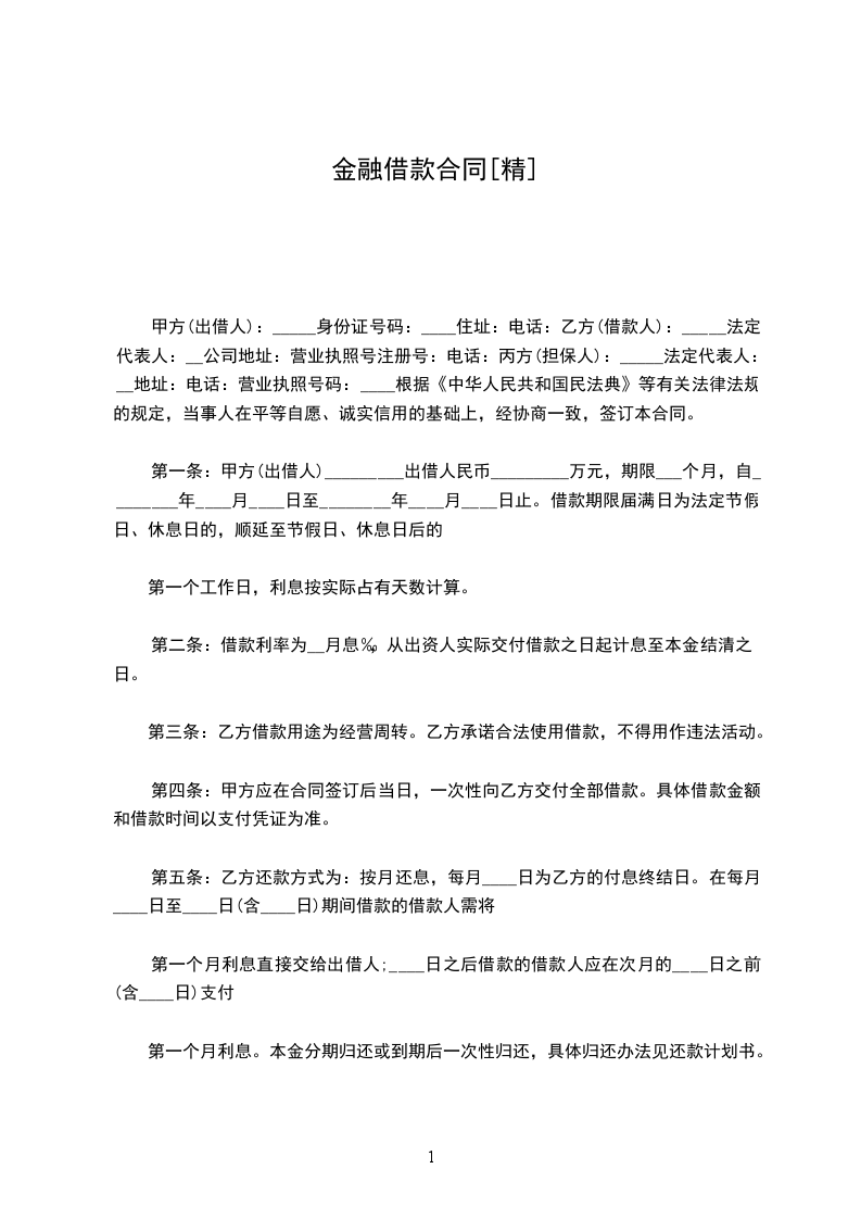 第一条借款金额 金额(大写)_______元整 (小写)_______元。