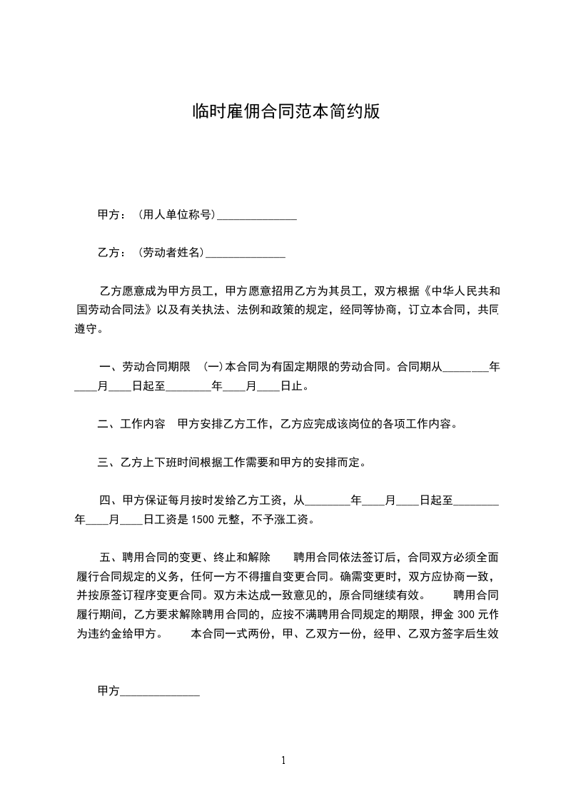 五、聘用合同的变更、终止和解除 聘用合同依法签订后,合同双方必须全面履行合同规定的义务,任何一方不得擅自变更合同。确需变更时,双方应协商一致,并按原签订程序变更合同。双方未达成一致意见的,原合同继续有效。 聘用合同履行期间,乙方要求解除聘用合同的,应按不满聘用合同规定的期限,押金300元作为违约金给甲方。 本合同一式两份,甲、乙双方一份,经甲、乙双方签字后生效。