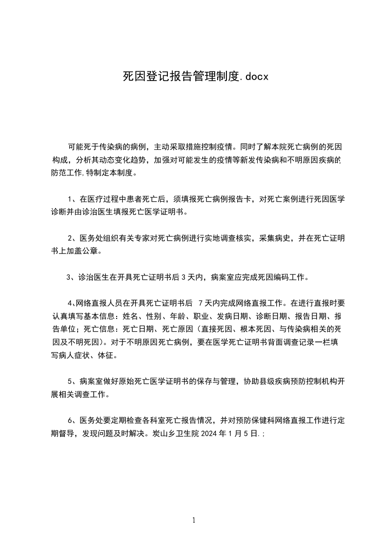 5、对院内死亡病例网络直报人员在开具死亡证明书后7天内完成网络直报工作(县级医疗机构要确定根本死因并进行死因编码)。