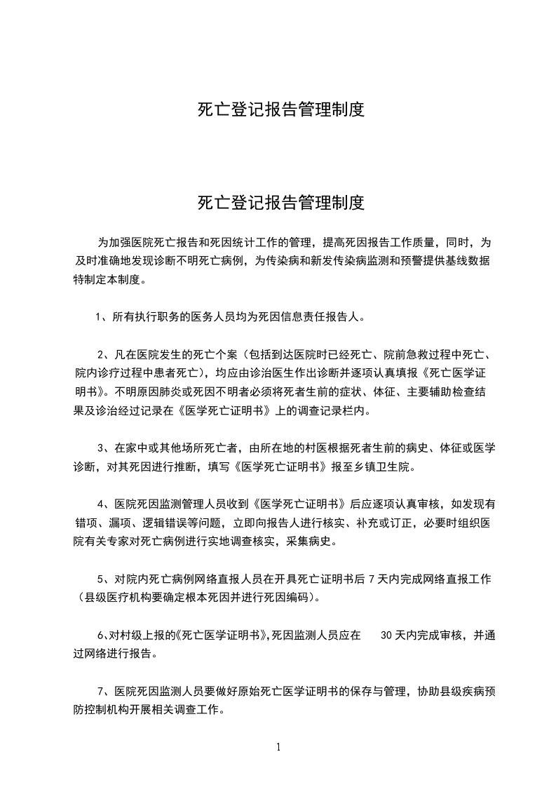为加强医院死亡报告和死因统计工作的管理,提高死因报告工作质量,同时,为及时准确地发现诊断不明死亡病例,为传染病和新发传染病监测和预警提供基线数据,特制定本制度。