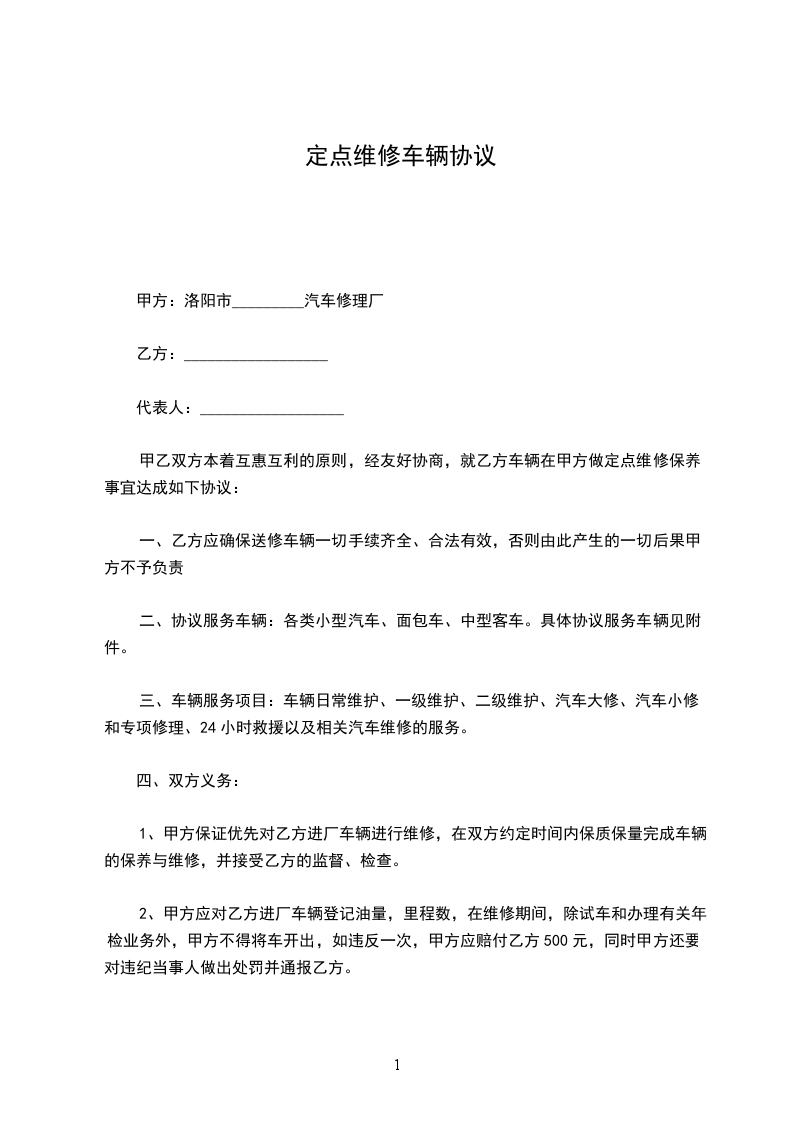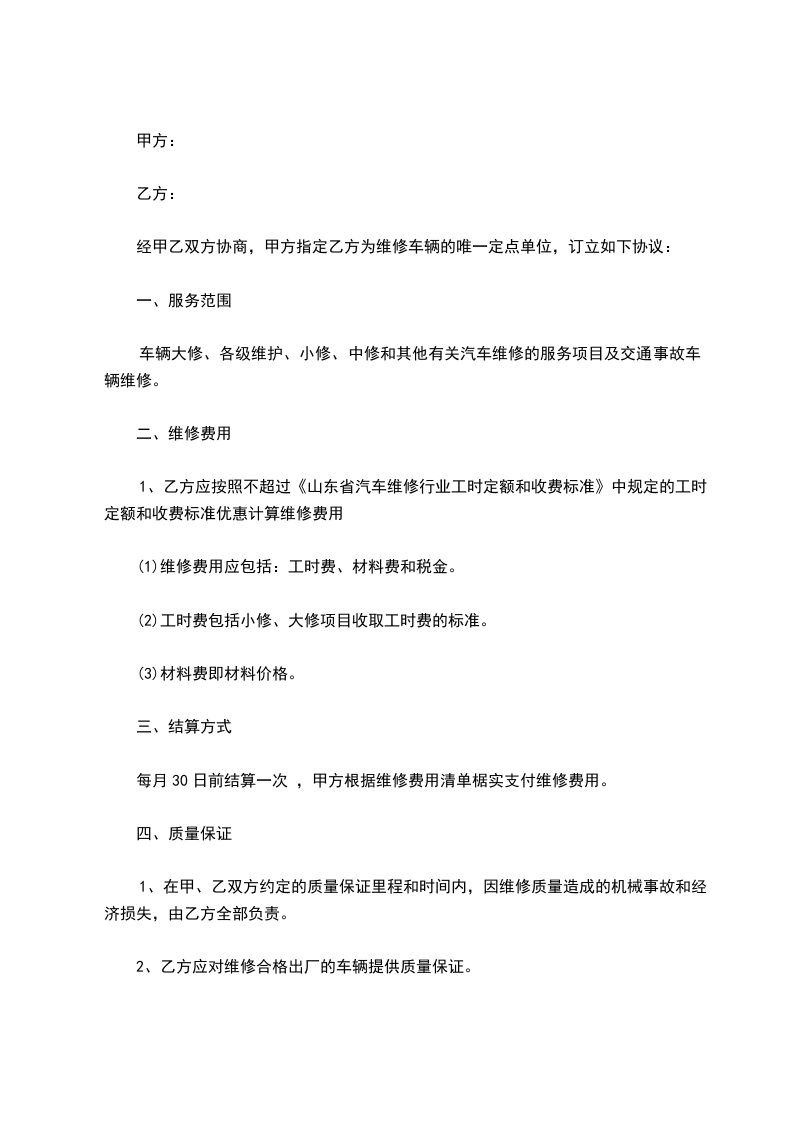 经甲乙双方协商,甲方指定乙方为维修车辆的唯一定点单位,订立如下协议: