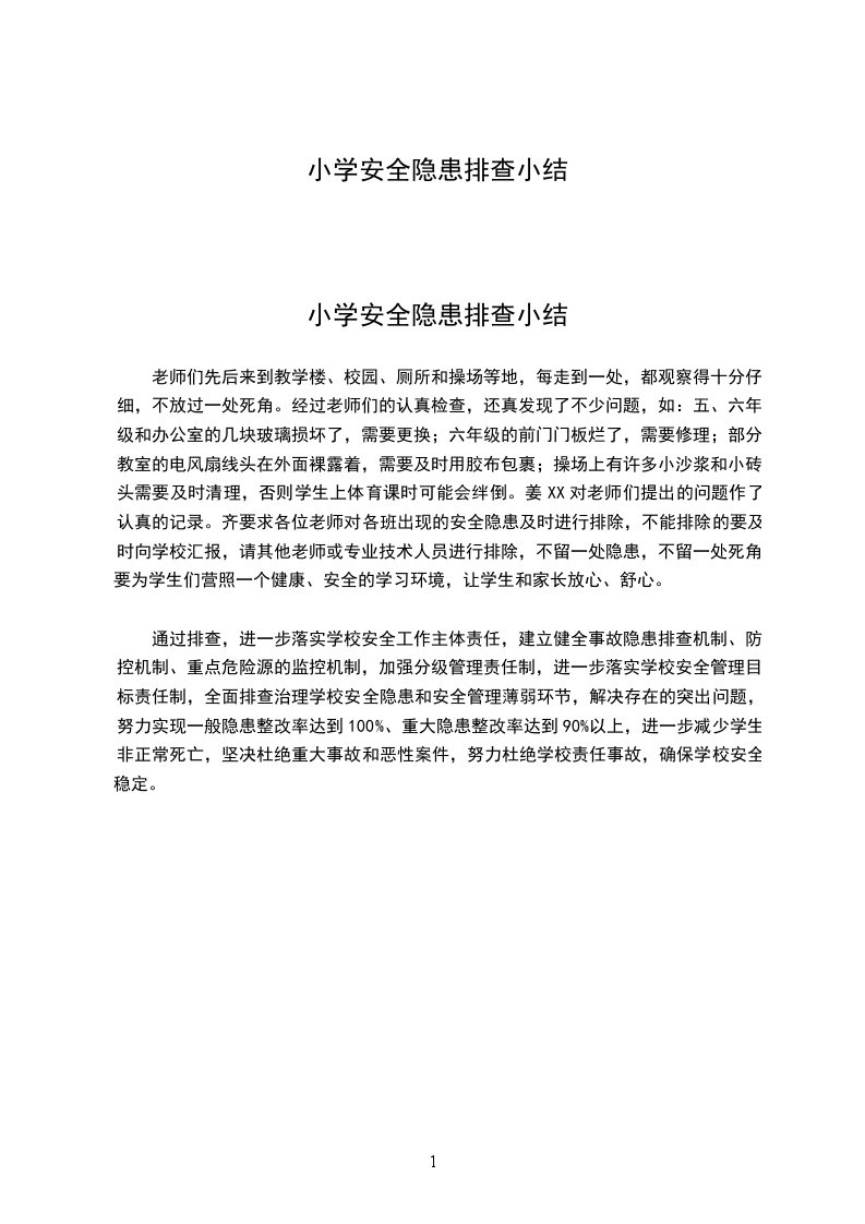 老师们先后来到教学楼、校园、厕所和操场等地,每走到一处,都观察得十分仔细,不放过一处死角。经过老师们的认真检查,还真发现了不少问题,如:五、六年级和办公室的几块玻璃损坏了,需要更换;六年级的前门门板烂了,需要修理;部分教室的电风扇线头在外面裸露着,需要及时用胶布包裹;操场上有许多小沙浆和小砖头需要及时清理,否则学生上体育课时可能会绊倒。姜XX对老师们提出的问题作了认真的记录。齐要求各位老师对各班出现的安全隐患及时进行排除,不能排除的要及时向学校汇报,请其他老师或专业技术人员进行排除,不留一处隐患,不留一处死角,要为学生们营照一个健康、安全的学习环境,让学生和家长放心、舒心。