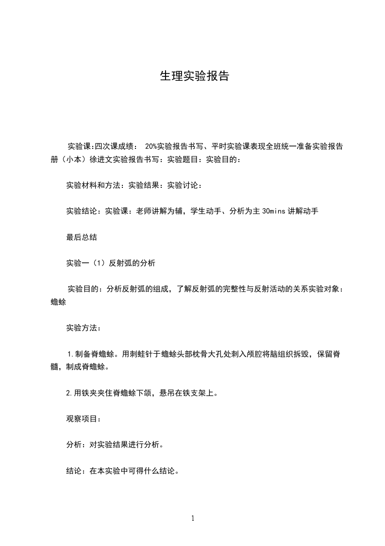 实验目的:分析反射弧的组成,了解反射弧的完整性与反射活动的关系实验对象:蟾蜍