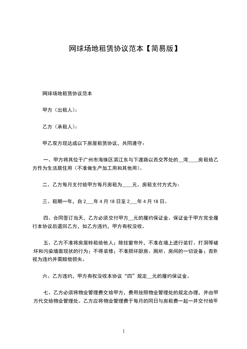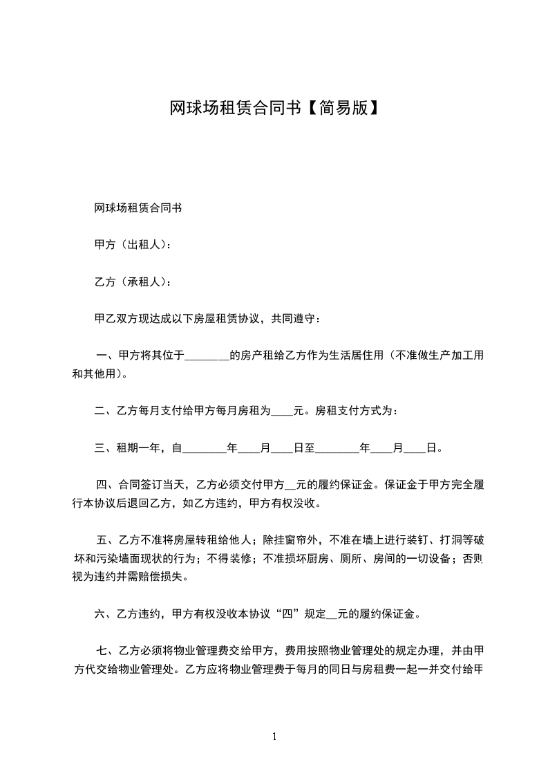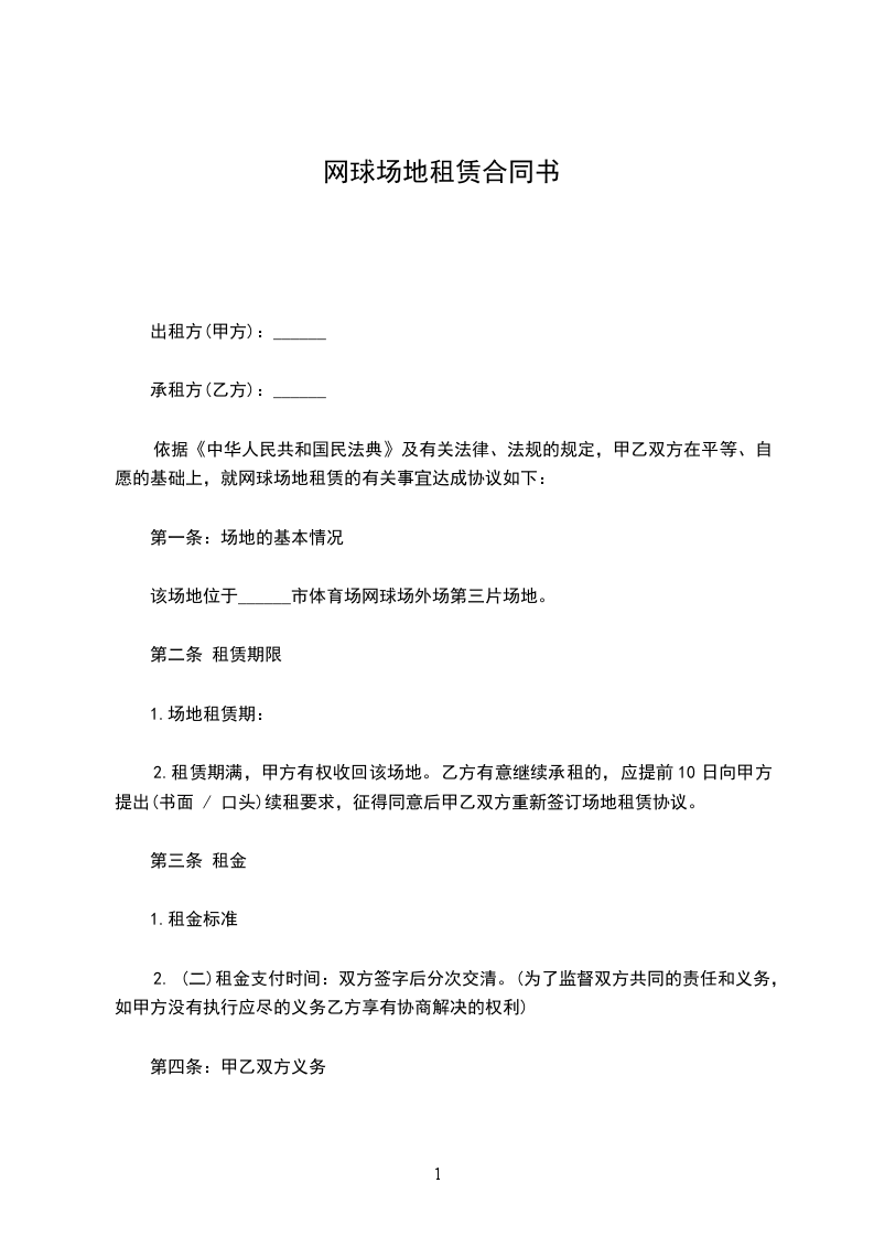 依据《中华人民共和国民法典》及有关法律、法规的规定,甲乙双方在平等、自愿的基础上,就网球场地租赁的有关事宜达成协议如下: