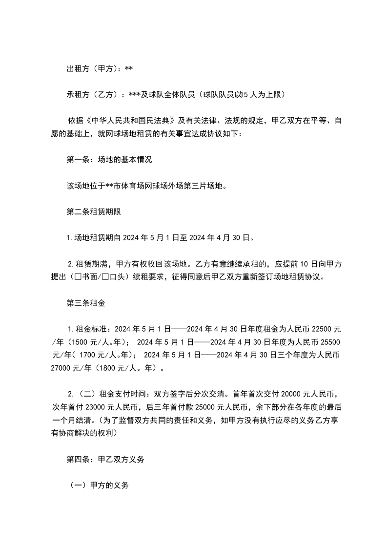 承租方(乙方):***及球队全体队员(球队队员以15人为上限)