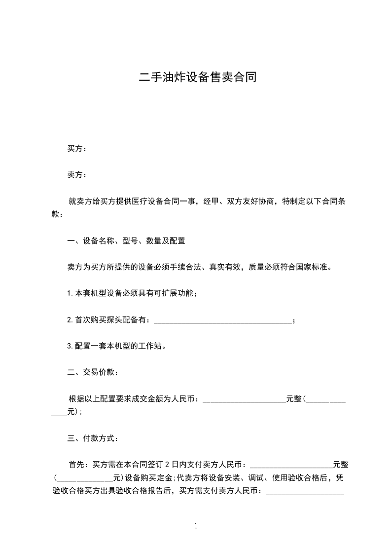 就卖方给买方提供医疗设备合同一事,经甲、双方友好协商,特制定以下合同条款: