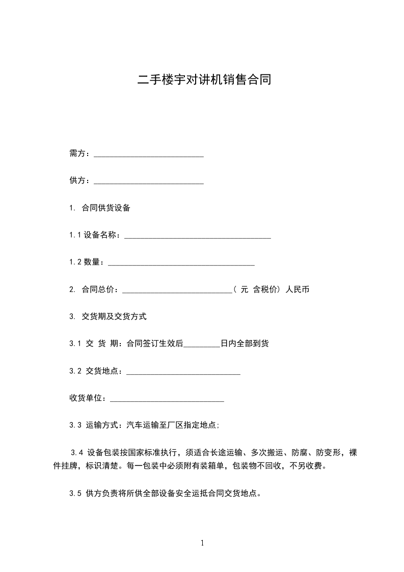 3.5 供方负责将所供全部设备安全运抵合同交货地点。
