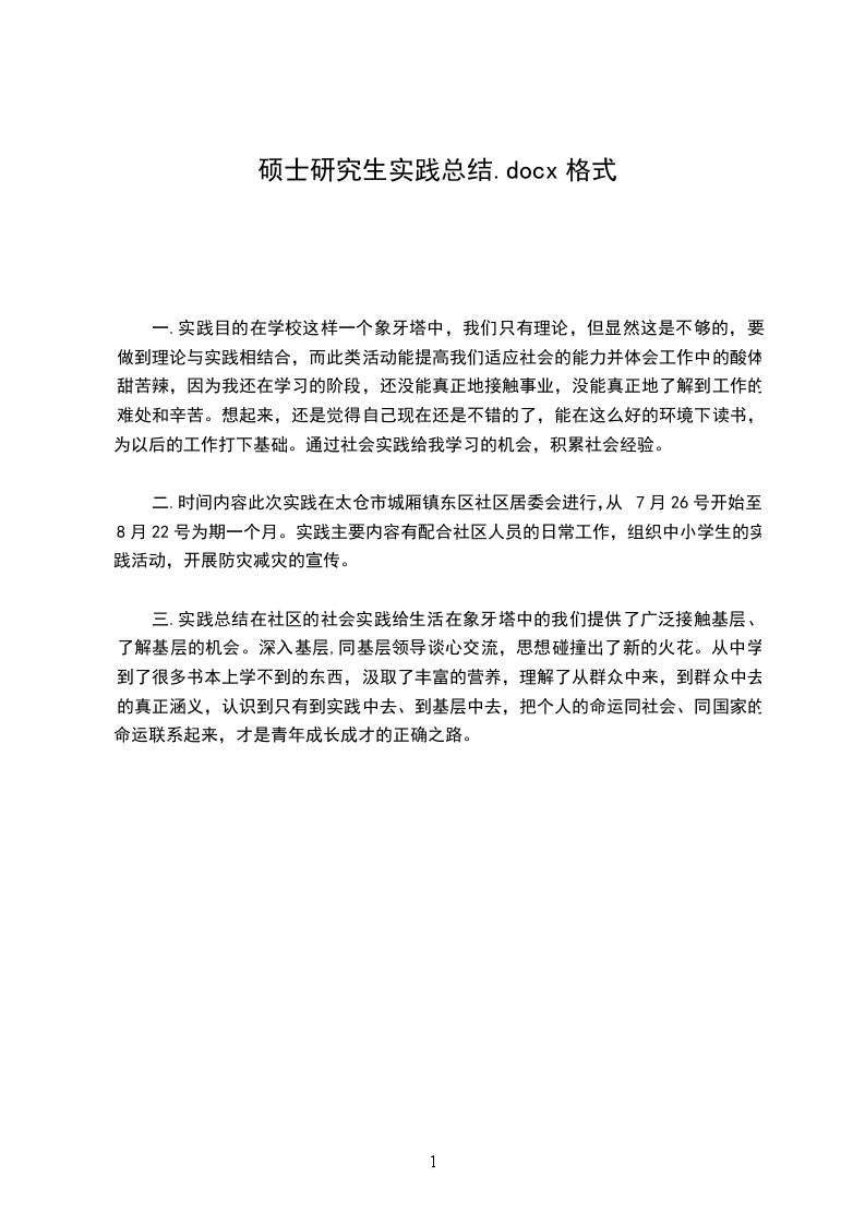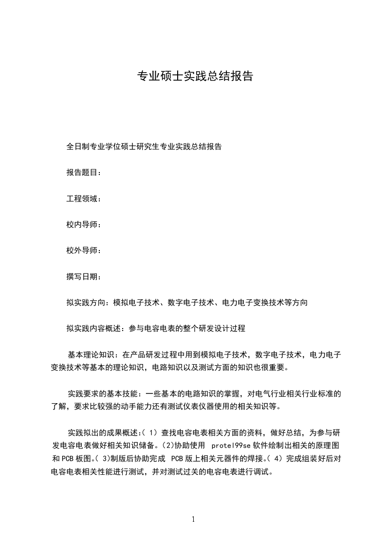 全日制专业学位硕士研究生专业实践总结报告