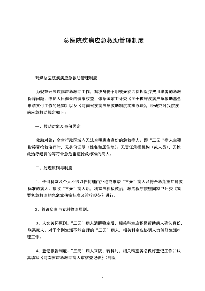 鹤煤总医院疾病应急救助管理制度