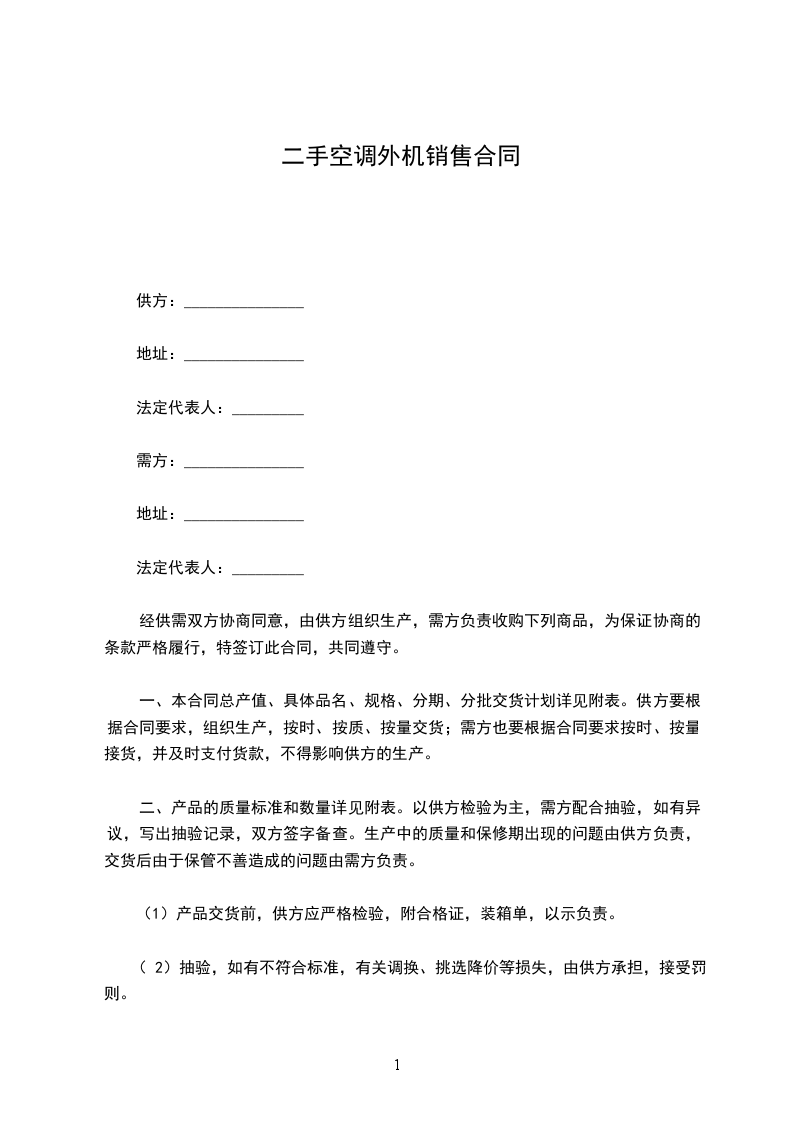 (1)供方无故延期交货或提供产品的品种、规格、质量不符合同规定,由此造成延误交货时间,每天应付需方延期货款总值_________%的违约金(可由双方约定)。