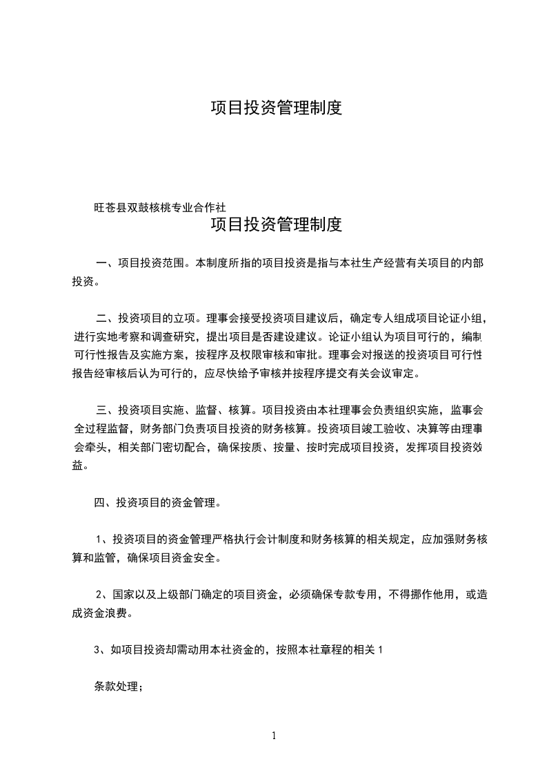 项目投资管理制度