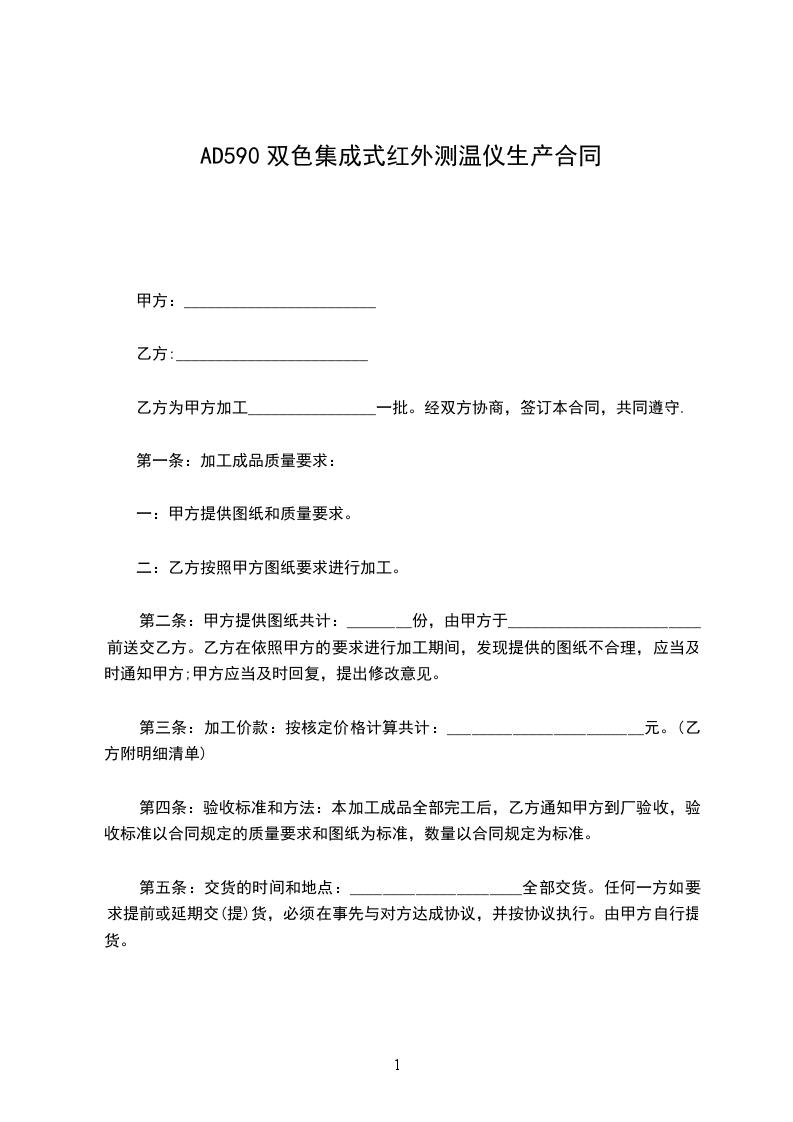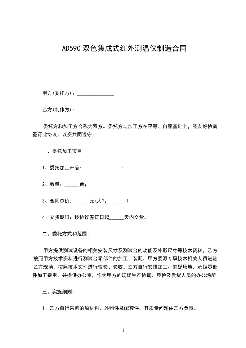 1、交货日期:_______年_______月_______日交货。