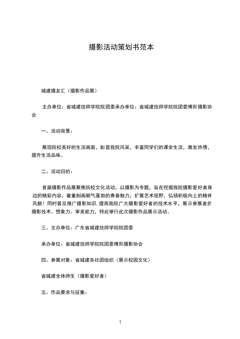 主办单位:省城建技师学院院团委承办单位:省城建技师学院院团委博形摄影协会
