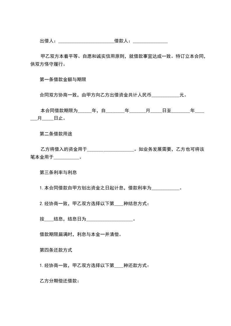 一、乙方贷给甲方人民币(大写)_____________________ ,于_______前交付甲方。