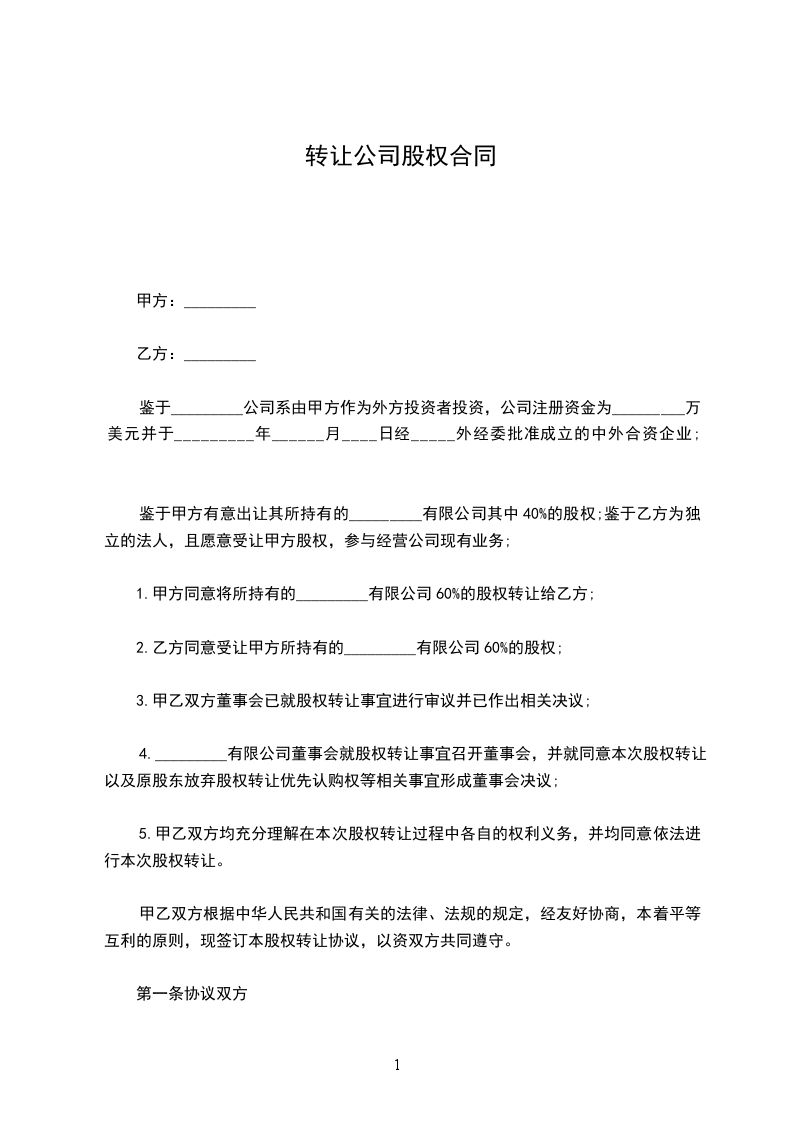 第一条 股权的转让