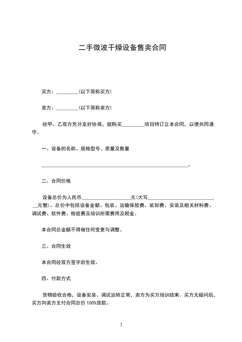 设备总价为人民币____________________元(大写_____________________________元整)。总价中包括设备金额、包装、运输保险费、装卸费、安装及相关材料费、调试费、软件费、检验费及培训所需费用及税金。