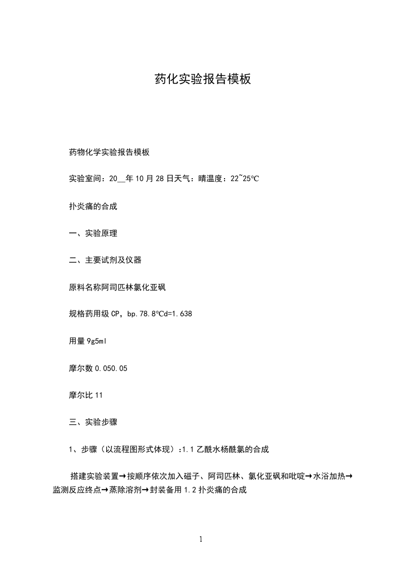 药物化学实验报告模板