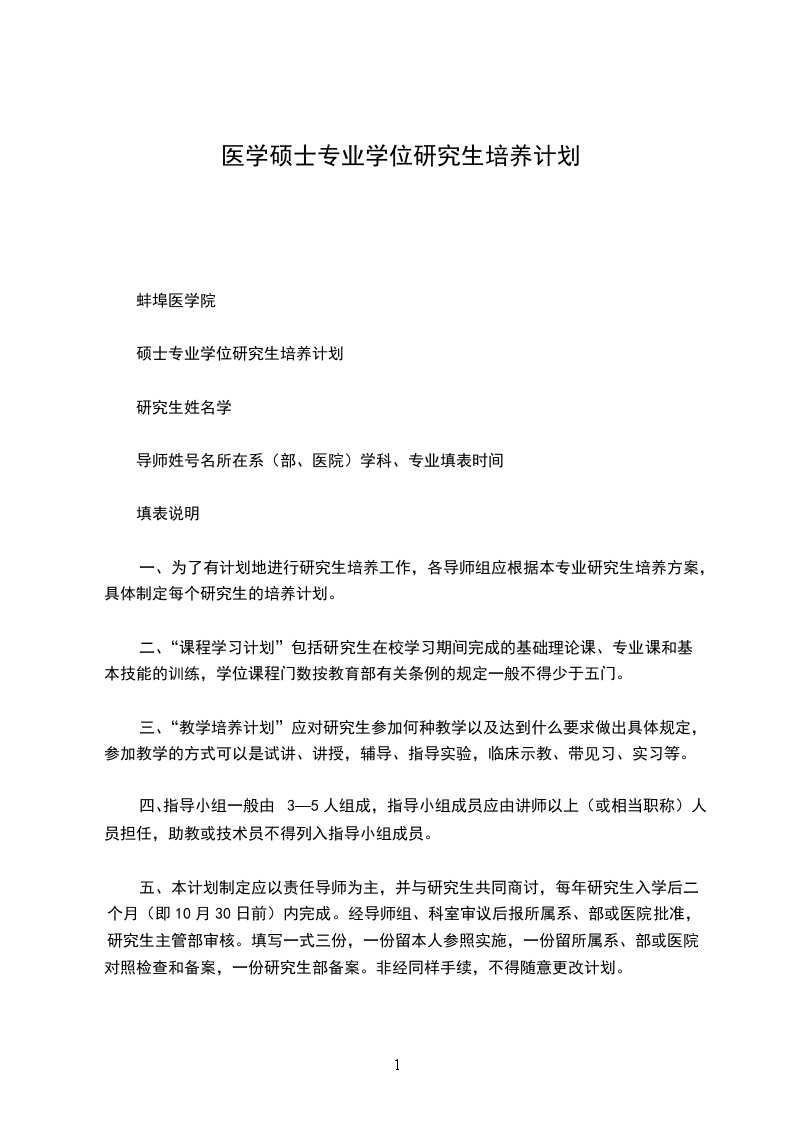 五、本计划制定应以责任导师为主,并与研究生共同商讨,每年研究生入学后二个月(即10月30日前)内完成。经导师组、科室审议后报所属系、部或医院批准,研究生主管部审核。填写一式三份,一份留本人参照实施,一份留所属系、部或医院,对照检查和备案,一份研究生部备案。非经同样手续,不得随意更改计划。