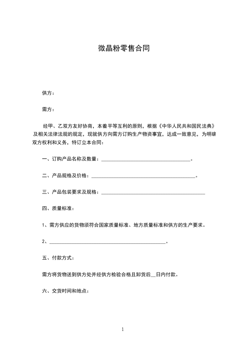 经甲、乙双方友好协商,本着平等互利的原则,根据《中华人民共和国民法典》及相关法律法规的规定,现就供方向需方订购生产物资事宜,达成一致意见,为明确双方权利和义务,特订立本合同: