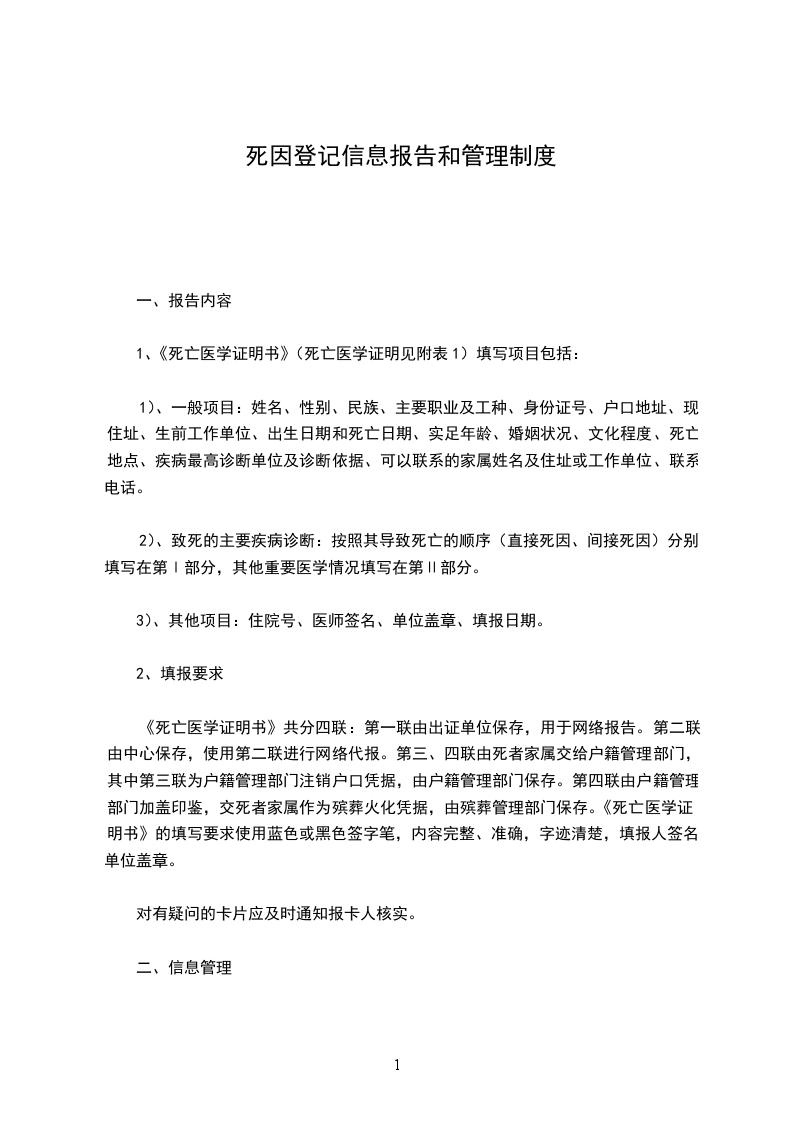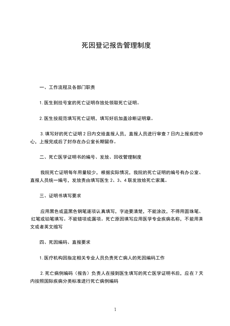 死因登记报告管理制度