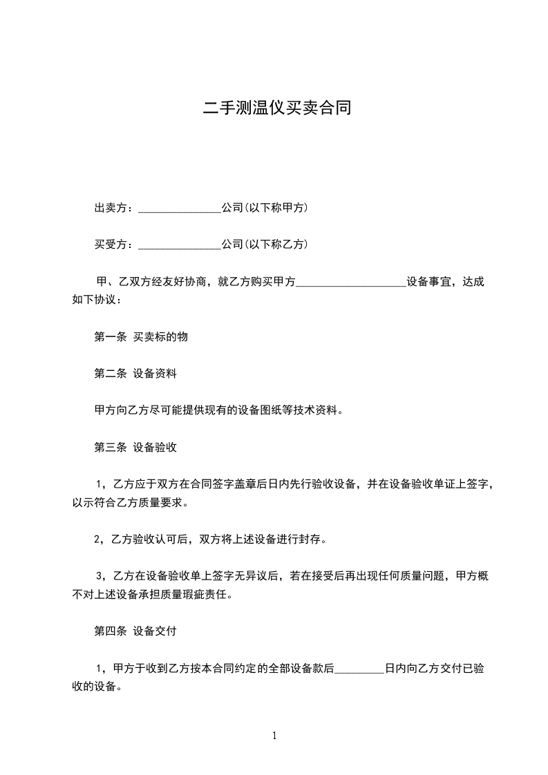 一、买方从卖方购买如下设备:________________________________。