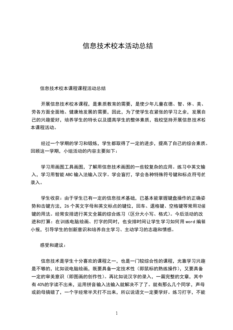 信息技术校本课程课程活动总结