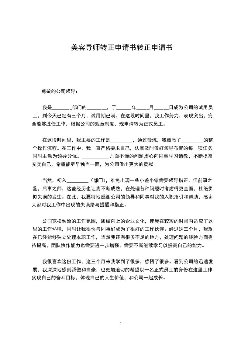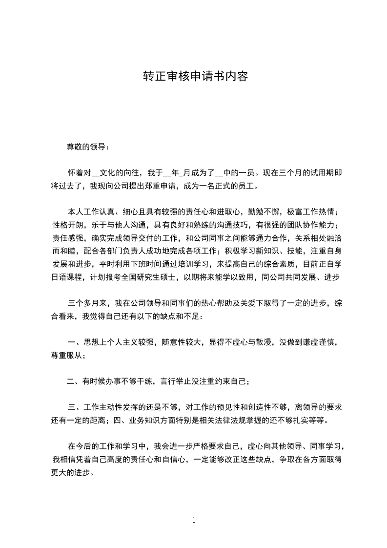 我是________部门的________,于______年_____月______日成为公司的试用员工,到今天已经有三个月,试用期已满。在这段时间里,我工作努力,表现突出,完全能够胜任工作,根据公司的规章制度,现申请转为正式员工。