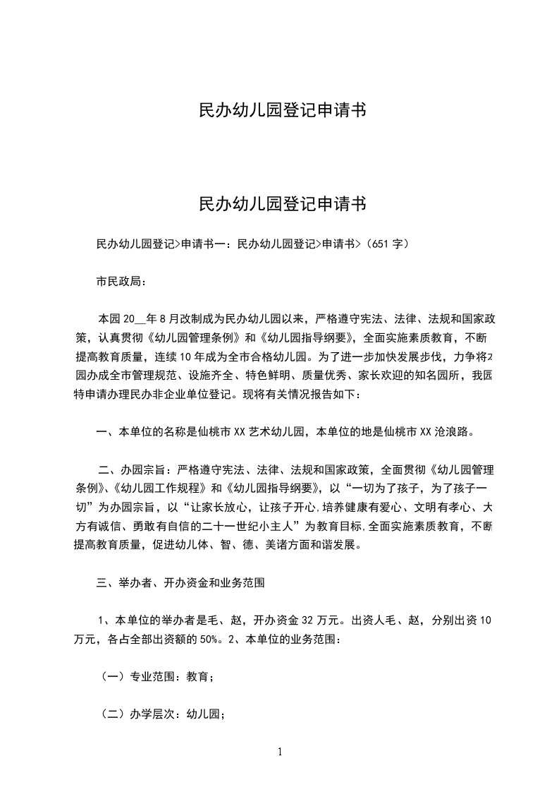 民办非企业单位登记申请书示范文本
