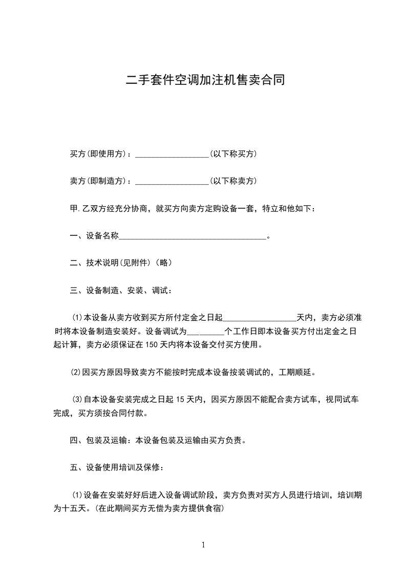 甲.乙双方经充分协商,就买方向卖方定购设备一套,特立和他如下: