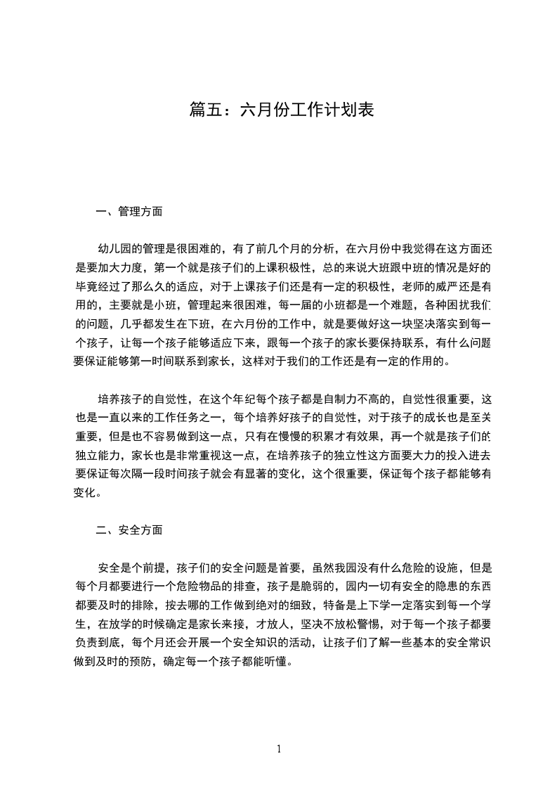 六月份工作要点: