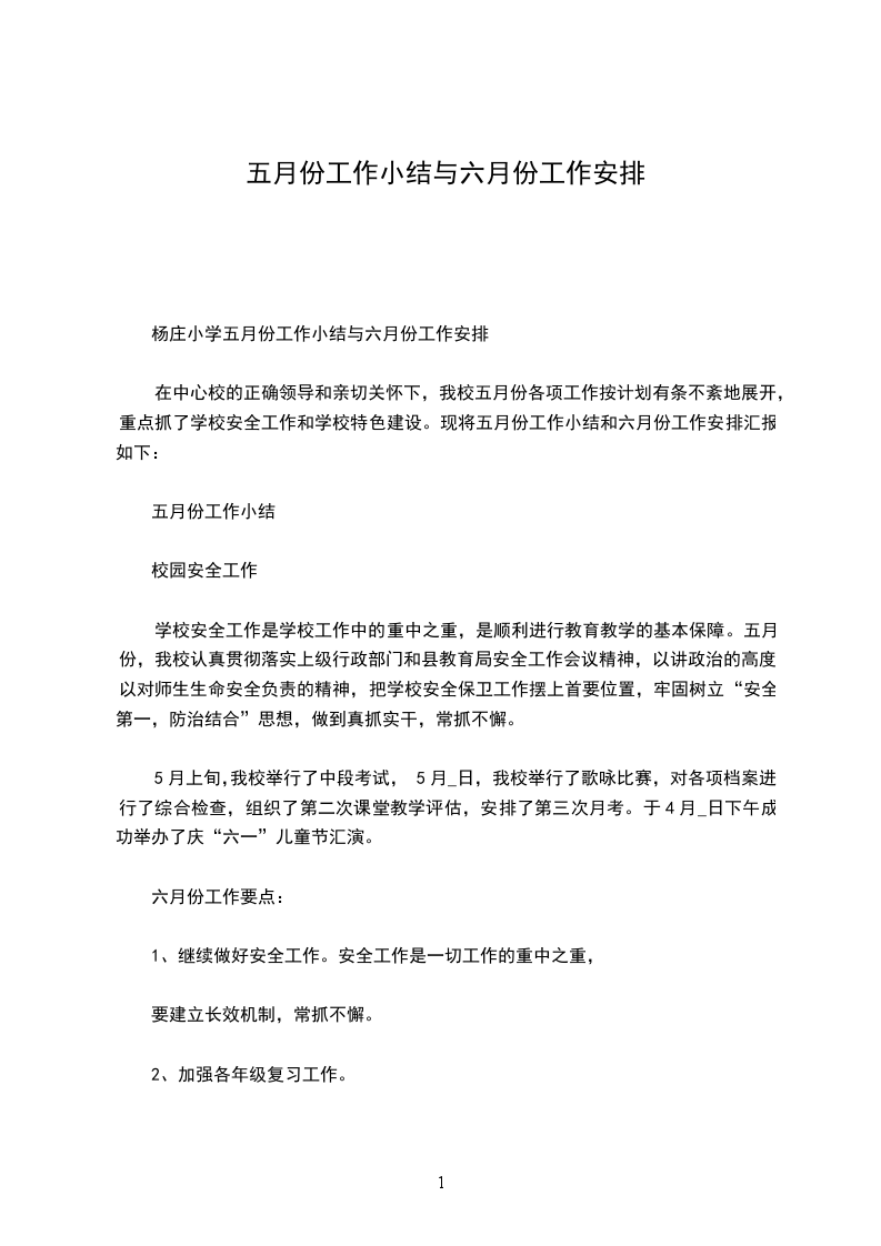 杨庄小学五月份工作小结与六月份工作安排