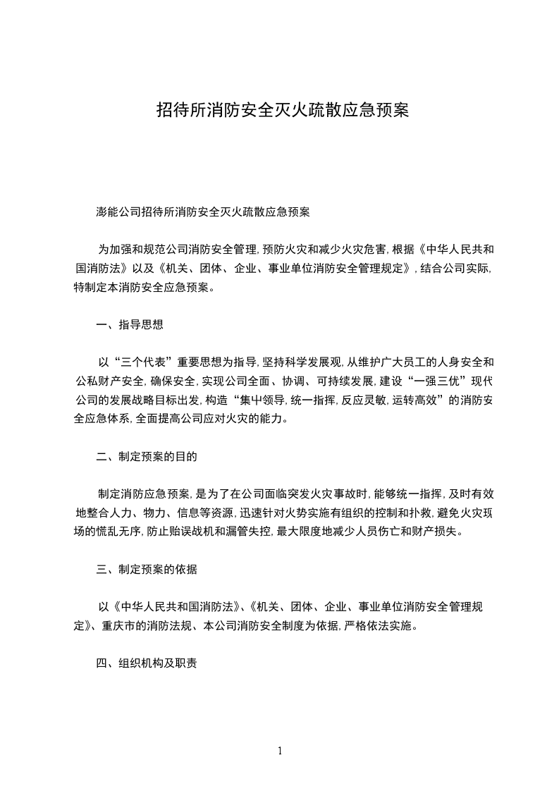 招待所成立消防安全应急指挥部,负责火灾现场指挥,消防安全应急指挥部由澎能和安全保卫负责人及有关部门成员组成。