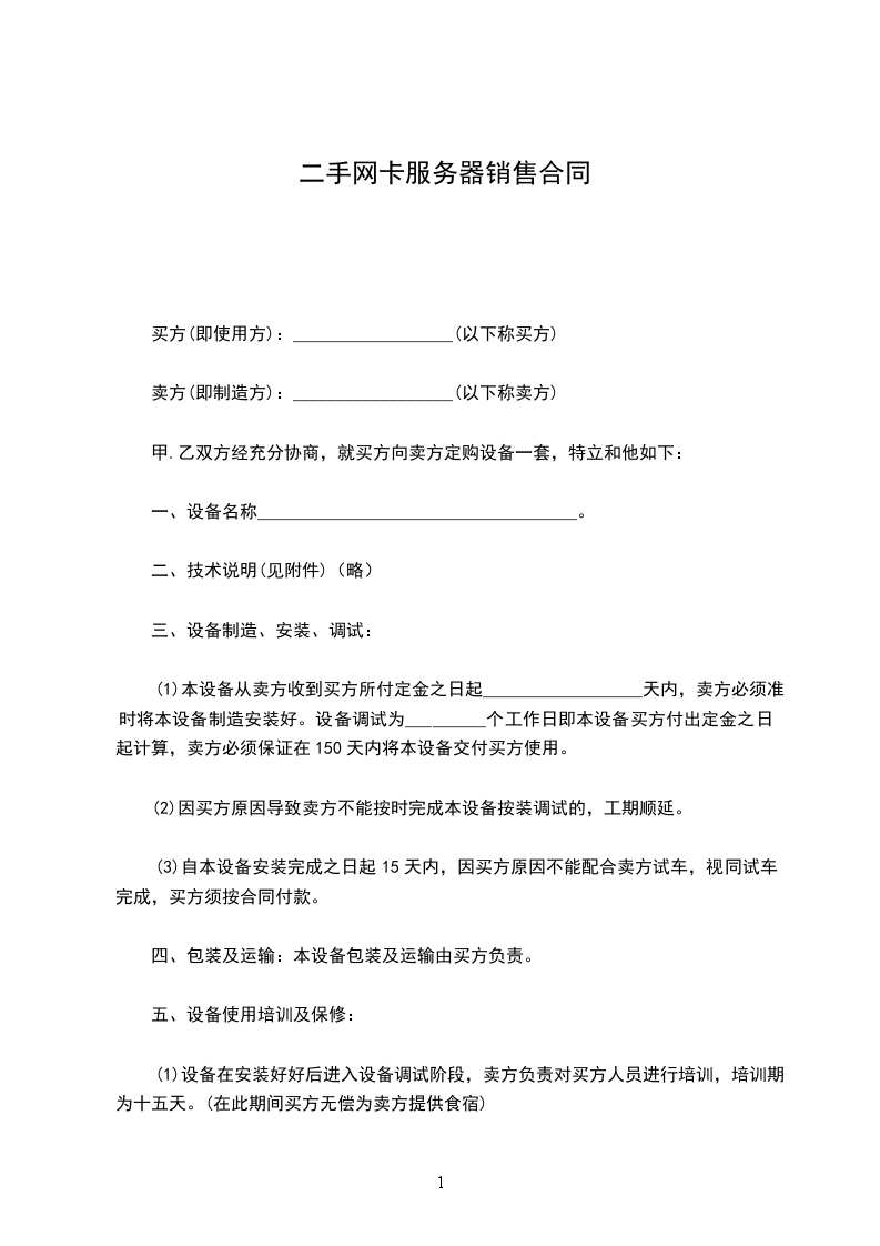 (1)本设备从卖方收到买方所付定金之日起__________________天内,卖方必须准时将本设备制造安装好。设备调试为_________个工作日即本设备买方付出定金之日起计算,卖方必须保证在150天内将本设备交付买方使用。