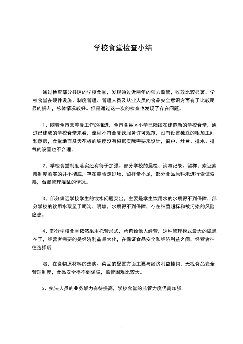 5、执法人员的业务能力有待提高,学校食堂的监管力度仍需加强。