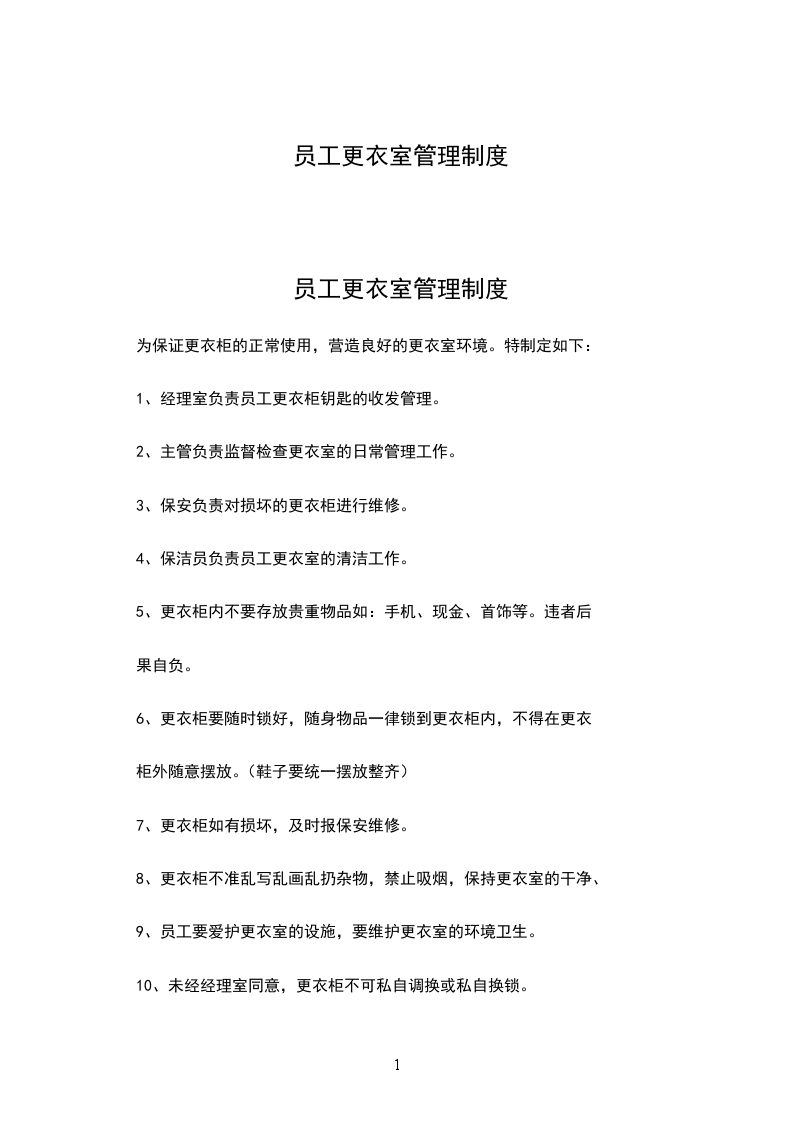 9、员工要爱护更衣室的设施,要维护更衣室的环境卫生。