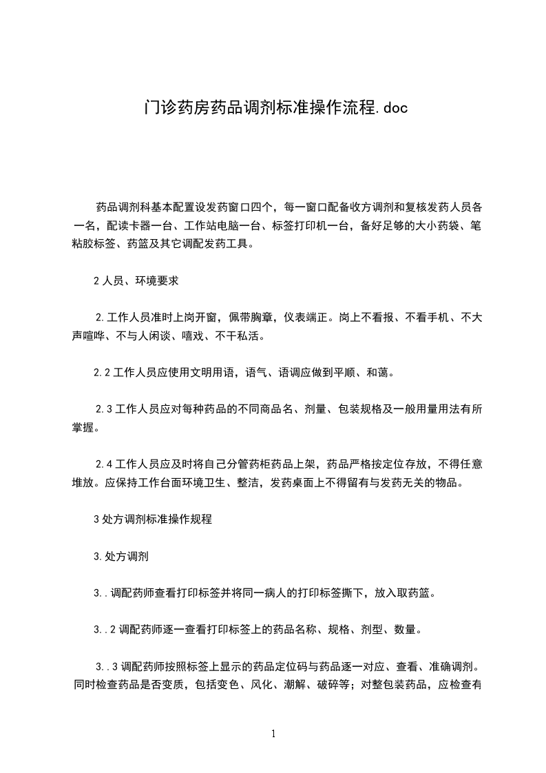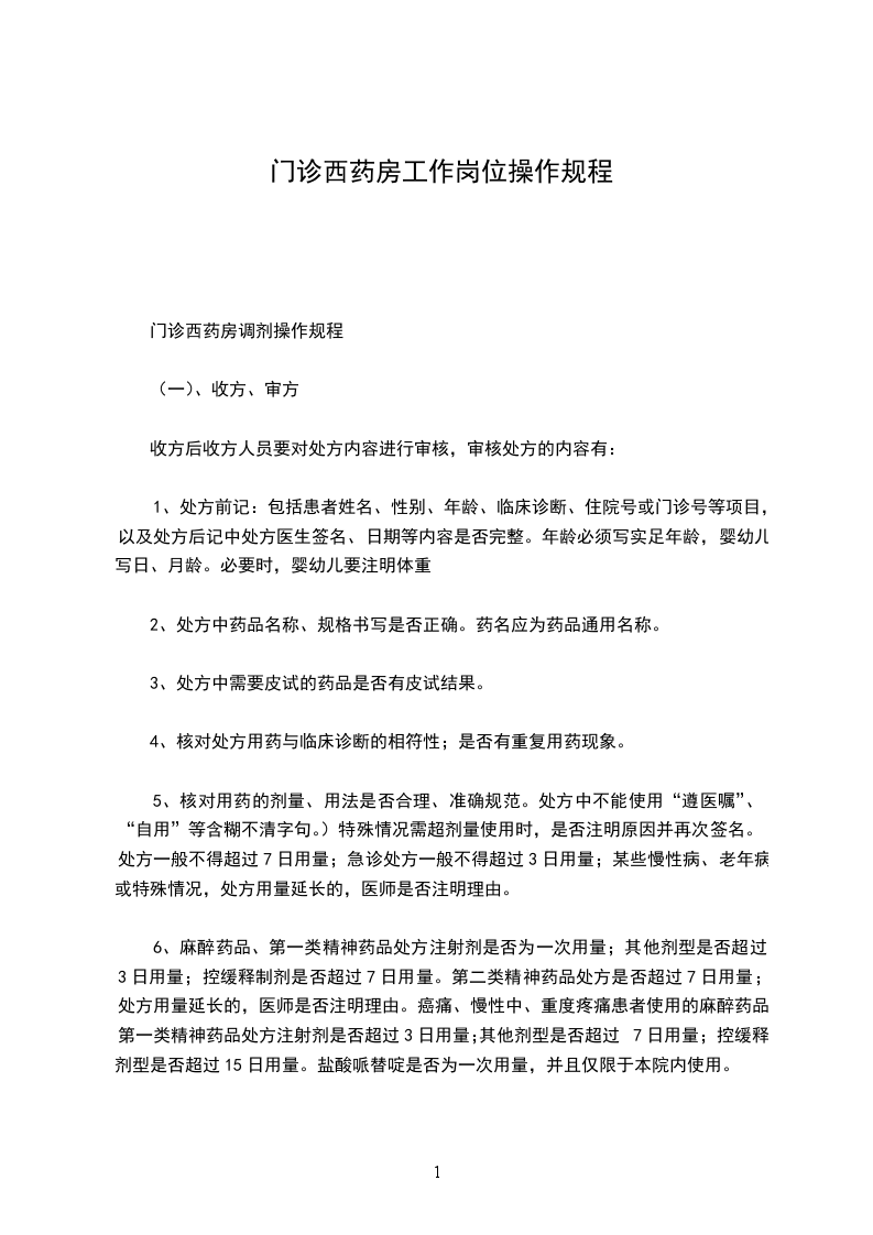 门诊西药房调剂操作规程