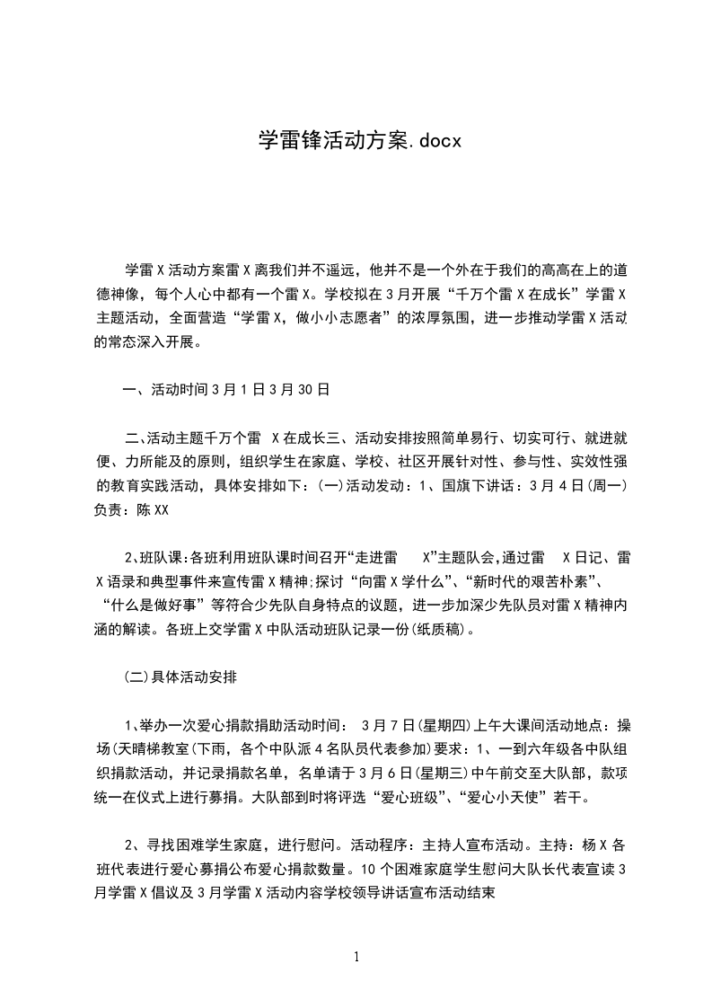 为了进一步加强未成年人的思想道德建设,学习助人为乐的雷精神,不断丰富和发展新时期学雷活动的内涵和形式,努力培养学生关爱他人、服务社会的优良品质,弘扬中华传统美德,结合我校实际情况,特制定我校学雷活动方案。
